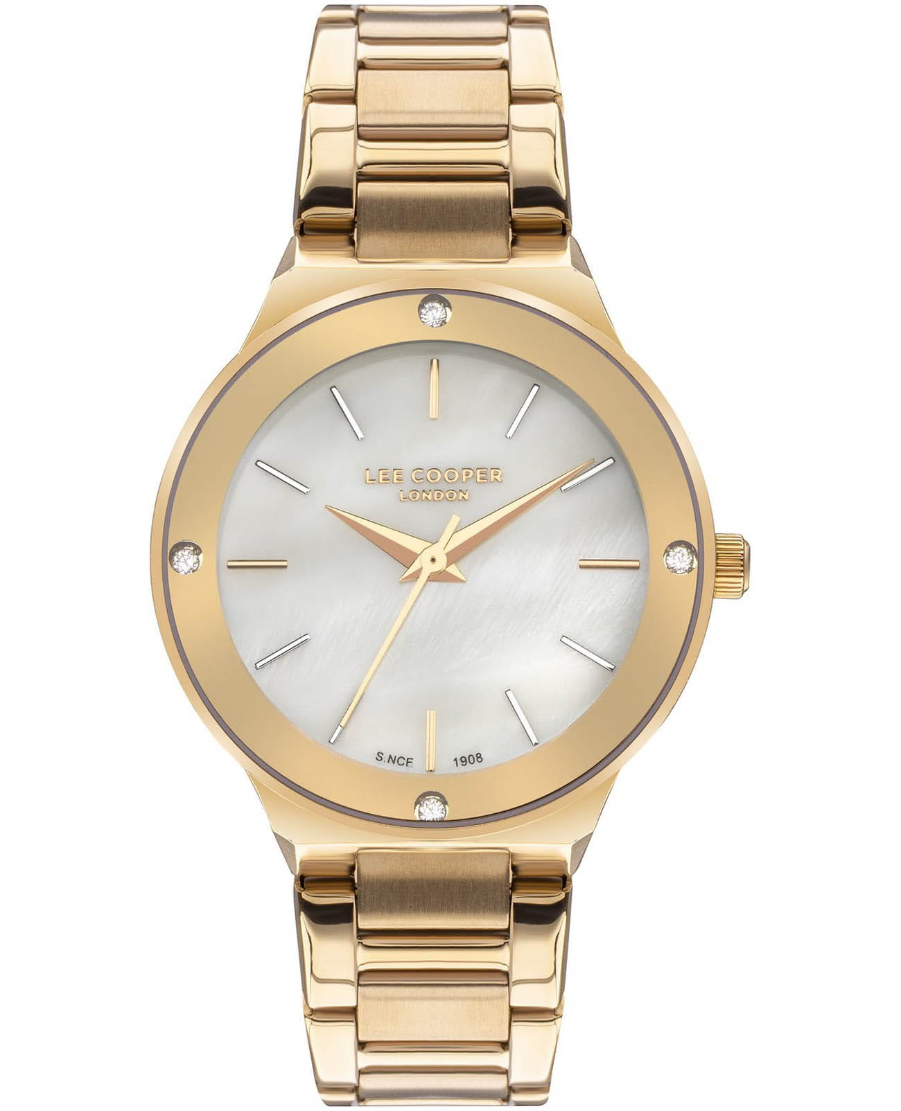 Женские наручные часы Lee Cooper LC07480.120 — это элегантная модель с утончённым дизайном. Корпус диаметром 35 мм выполнен из нержавеющей стали, а безельБезельВнешний ободок, закрепляющий стекло. В спортивных часах так называется поворотное кольцо с делениями на циферблате, выполняет роль таймера – замеряет отрезки времени на шкале. Неподвижный безель – элемент декора. Однонаправленно вращающийся безель на дайверских часах позволяет фиксировать моменты погружения и выныривания на поверхность. золотистого цвета с IP-покрытиемIP-покрытиеМетод ионного напыления. Демонстрирует повышенную устойчивость к истиранию, окислению и химическим веществам. Под воздействием высокого давления и температуры около 1500°C молекулы металла надёжно соединяются с частицами корпуса часов. и кристаллами придаёт часам изысканный вид. Перламутровый циферблат украшен изящными метками и стрелками, обеспечивая удобное считывание времени. Циферблат защищён минеральным стекломМинеральное стеклоМинеральное стекло представляет собой искусственно выращенный минерал кварца. Такое стекло отличается особой устойчивостью к повреждениям и царапинам. Уступает по некоторым качествам сапфировому стеклу., устойчивым к царапинам. Часы работают на кварцевом механизме, обеспечивая точность хода. Браслет из нержавеющей стали с раскладной застёжкойРаскладная застёжкаТакой тип застёжки используется только на браслетах из металла. Она никогда не раскрывается полностью, происходит разделение на 2 и более частей. Раскладывающая застёжка снизит вероятность потери часов к минимуму. гарантирует комфортное ношение и надёжную фиксацию на запястье. Водозащита 30 метров защищает часы от случайных брызг и дождя, делая их подходящими для повседневного использования.