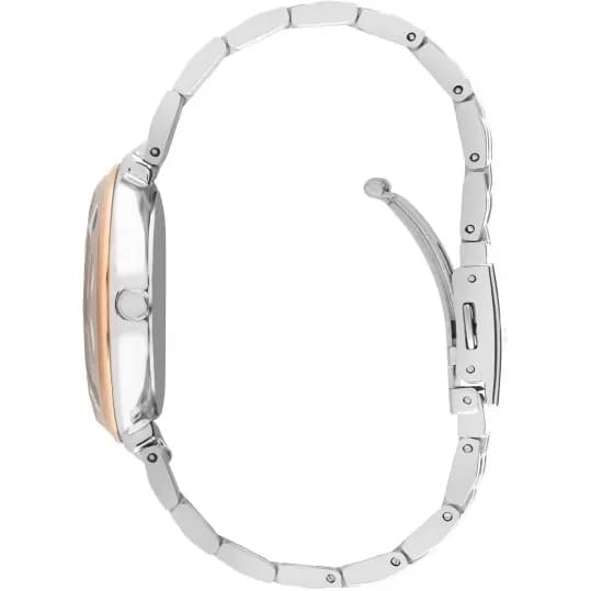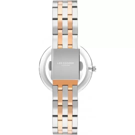 Женские наручные часы Lee Cooper LC07568.590 — это изысканная модель, сочетающая элегантный дизайн и практичность. Корпус диаметром 34 мм выполнен из суперметалла с IP-покрытиемIP-покрытиеМетод ионного напыления. Демонстрирует повышенную устойчивость к истиранию, окислению и химическим веществам. Под воздействием высокого давления и температуры около 1500°C молекулы металла надёжно соединяются с частицами корпуса часов. золотистого оттенка, придавая часам уникальный и утончённый вид. Перламутровый циферблат с аналоговым отображением времени добавляет свежий и стильный акцент, делая часы привлекательными для различных случаев. Модель оснащена надёжным кварцевым механизмом, обеспечивающим точность и долговечность. Минеральное стеклоМинеральное стеклоМинеральное стекло представляет собой искусственно выращенный минерал кварца. Такое стекло отличается особой устойчивостью к повреждениям и царапинам. Уступает по некоторым качествам сапфировому стеклу. защищает циферблат от повреждений и царапин, сохраняя его презентабельный вид. Водонепроницаемость 30 метров защищает часы от случайных брызг, что делает их подходящими для повседневных ситуаций, таких как мытьё рук или прогулки под лёгким дождём.  Раскладная застёжкаРаскладная застёжкаТакой тип застёжки используется только на браслетах из металла. Она никогда не раскрывается полностью, происходит разделение на 2 и более частей. Раскладывающая застёжка снизит вероятность потери часов к минимуму. обеспечивает удобную посадку и надёжность при ношении. В целом, эти часы являются отличным выбором для тех, кто ищет аксессуар, объединяющий классический стиль, уникальное цветовое решение и функциональность. Их гармоничное сочетание серебристых и золотистых оттенков с элегантным перламутровым циферблатом и качественным механизмом делает их идеальным дополнением к любому гардеробу — от официального до повседневного.