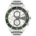 Мужские часы Lee Cooper LC07529.330 — это стильное сочетание элегантности и современного дизайна. Круглый корпус диаметром 44 мм выполнен из суперметалла серебристого цвета. БезельБезельВнешний ободок, закрепляющий стекло. В спортивных часах так называется поворотное кольцо с делениями на циферблате, выполняет роль таймера – замеряет отрезки времени на шкале. Неподвижный безель – элемент декора. Однонаправленно вращающийся безель на дайверских часах позволяет фиксировать моменты погружения и выныривания на поверхность. с IP-покрытиемIP-покрытиеМетод ионного напыления. Демонстрирует повышенную устойчивость к истиранию, окислению и химическим веществам. Под воздействием высокого давления и температуры около 1500°C молекулы металла надёжно соединяются с частицами корпуса часов. зеленого цвета придает модели особый вид. Циферблат защищен минеральным стекломМинеральное стеклоМинеральное стекло представляет собой искусственно выращенный минерал кварца. Такое стекло отличается особой устойчивостью к повреждениям и царапинам. Уступает по некоторым качествам сапфировому стеклу., обеспечивающим устойчивость к царапинам. Метки в виде штрихов. Часы оснащены надежным кварцевым механизмом, а металлический браслет на раскладной застёжкеРаскладная застёжкаТакой тип застёжки используется только на браслетах из металла. Она никогда не раскрывается полностью, происходит разделение на 2 и более частей. Раскладывающая застёжка снизит вероятность потери часов к минимуму. гарантирует комфортную посадку на запястье. Окошко даты находится в положении 3 часа. Стрелки и метки с люминесцентным покрытиемЛюминесцентное покрытиеПозволяет считывать показания времени в темноте. Производители наносят на стрелки, часовые индексы, безель или поверхность циферблата светонакопительный состав, дающий холодное свечение. позволяют легко считывать время даже в условиях недостаточного освещения. Мультифункциональная модель с индикацией даты, дня недели, с дополнительным 24-х часовым индикатором. Водозащита 50 метров позволит защитить корпус от случайных брызг или капель дождя. Lee Cooper — отличный выбор для тех, кто ценит утонченность и качество.