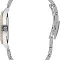 Женские часы Lee Cooper LC07569.230 — это стильное сочетание элегантности и современного дизайна. Круглый корпус диаметром 34 мм выполнен из суперметалла серебристого цвета. Неподвижный безельБезельВнешний ободок, закрепляющий стекло. В спортивных часах так называется поворотное кольцо с делениями на циферблате, выполняет роль таймера – замеряет отрезки времени на шкале. Неподвижный безель – элемент декора. Однонаправленно вращающийся безель на дайверских часах позволяет фиксировать моменты погружения и выныривания на поверхность. с IP-покрытиемIP-покрытиеМетод ионного напыления. Демонстрирует повышенную устойчивость к истиранию, окислению и химическим веществам. Под воздействием высокого давления и температуры около 1500°C молекулы металла надёжно соединяются с частицами корпуса часов. золотого цвета инкрустирован кристаллами, что придает модели особый блеск. Серебристый циферблат защищен минеральным стекломМинеральное стеклоМинеральное стекло представляет собой искусственно выращенный минерал кварца. Такое стекло отличается особой устойчивостью к повреждениям и царапинам. Уступает по некоторым качествам сапфировому стеклу., обеспечивающим устойчивость к царапинам. Часы оснащены надежным кварцевым механизмом, а металлический браслет с частичным IP-покрытиемIP-покрытиеМетод ионного напыления. Демонстрирует повышенную устойчивость к истиранию, окислению и химическим веществам. Под воздействием высокого давления и температуры около 1500°C молекулы металла надёжно соединяются с частицами корпуса часов. на раскладной застёжкеРаскладная застёжкаТакой тип застёжки используется только на браслетах из металла. Она никогда не раскрывается полностью, происходит разделение на 2 и более частей. Раскладывающая застёжка снизит вероятность потери часов к минимуму. гарантирует комфортную посадку на запястье. Стрелки с люминесцентным покрытиемЛюминесцентное покрытиеПозволяет считывать показания времени в темноте. Производители наносят на стрелки, часовые индексы, безель или поверхность циферблата светонакопительный состав, дающий холодное свечение. позволяют легко считывать время даже в условиях недостаточного освещения. Водозащита 30 метров защищает модель от случайных брызг и дождя. Lee Cooper — отличный выбор для тех, кто ценит утонченность и качество.