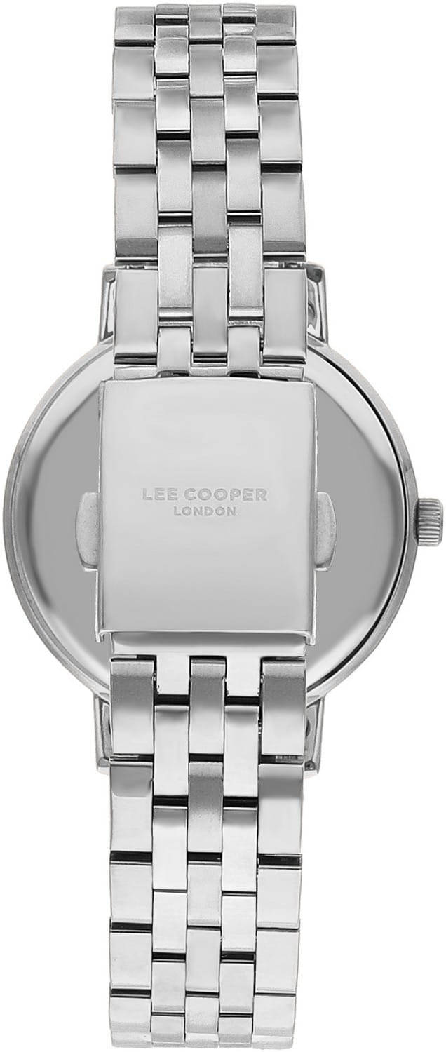 Женские часы Lee Cooper LC07590.390 — это стильное сочетание элегантности и современного дизайна. Круглый корпус диаметром 34 мм выполнен из суперметалла серебристого цвета. Неподвижный безельБезельВнешний ободок, закрепляющий стекло. В спортивных часах так называется поворотное кольцо с делениями на циферблате, выполняет роль таймера – замеряет отрезки времени на шкале. Неподвижный безель – элемент декора. Однонаправленно вращающийся безель на дайверских часах позволяет фиксировать моменты погружения и выныривания на поверхность. инкрустирован цирконами, что придает модели особый блеск. Градиентный циферблат с минималистичными метками в виде точек придает часам элегантность и утонченность, делая их идеальным аксессуаром для любой женщины, а минеральное стеклоМинеральное стеклоМинеральное стекло представляет собой искусственно выращенный минерал кварца. Такое стекло отличается особой устойчивостью к повреждениям и царапинам. Уступает по некоторым качествам сапфировому стеклу., обеспечивает устойчивость к царапинам. Центральные часовая, минутная и секундная стрелки. Часы оснащены надежным кварцевым механизмом, источник питания - батарейка. Металлический браслет на раскладной застёжкеРаскладная застёжкаТакой тип застёжки используется только на браслетах из металла. Она никогда не раскрывается полностью, происходит разделение на 2 и более частей. Раскладывающая застёжка снизит вероятность потери часов к минимуму. гарантирует комфортную посадку на запястье. Водозащита 30 метров защищает модель от случайных брызг и дождя. Lee Cooper  — отличный выбор для тех, кто ценит утонченность и качество.