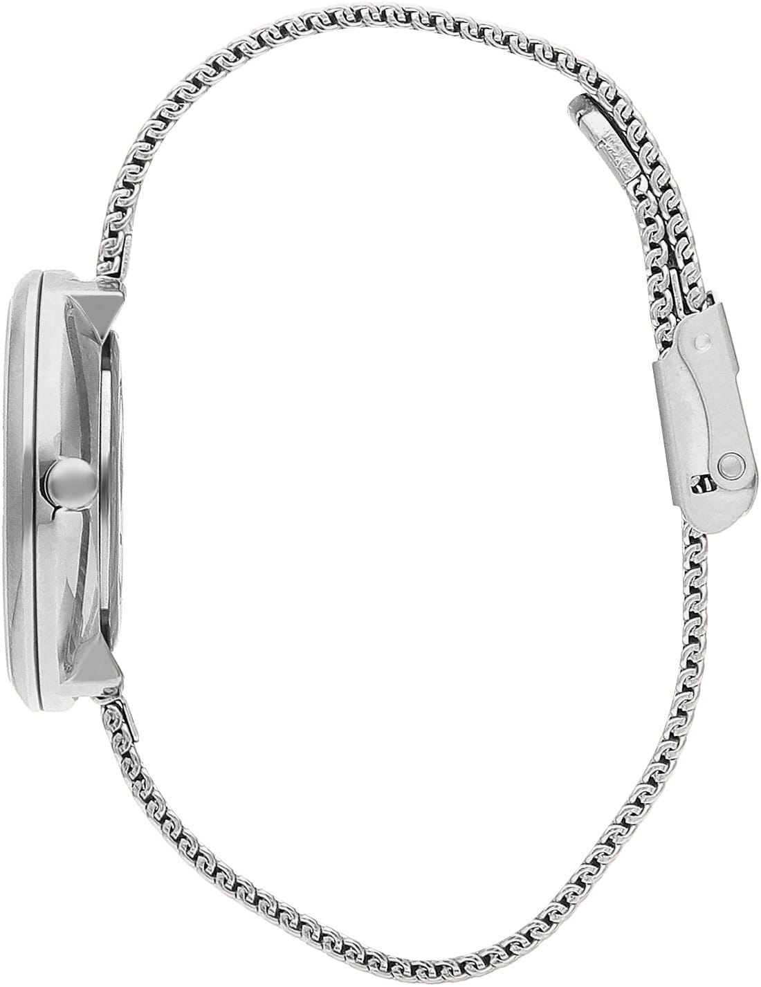 Женские кварцевые часы Lee Cooper LC07601.370 — это классический аксессуар с элегантным дизайном. Корпус диаметром 32 мм выполнен из суперметалла серебряного цвета. Циферблат зелёного цвета украшен вставками из циркония, придающими сияние и изысканность. Метки на циферблате в виде точек. Циферблат защищён минеральным стекломМинеральное стеклоМинеральное стекло представляет собой искусственно выращенный минерал кварца. Такое стекло отличается особой устойчивостью к повреждениям и царапинам. Уступает по некоторым качествам сапфировому стеклу.. Часы оснащены браслетом из суперметалла    миланского плетения на раскладной застёжкеРаскладная застёжкаТакой тип застёжки используется только на браслетах из металла. Она никогда не раскрывается полностью, происходит разделение на 2 и более частей. Раскладывающая застёжка снизит вероятность потери часов к минимуму.. Водонепроницаемость 30 м позволяет использовать часы в повседневных условиях, защищая от случайных брызг и капель дождя. Сочетание лаконичного стиля и надёжного исполнения делает эти часы универсальным выбором на каждый день.