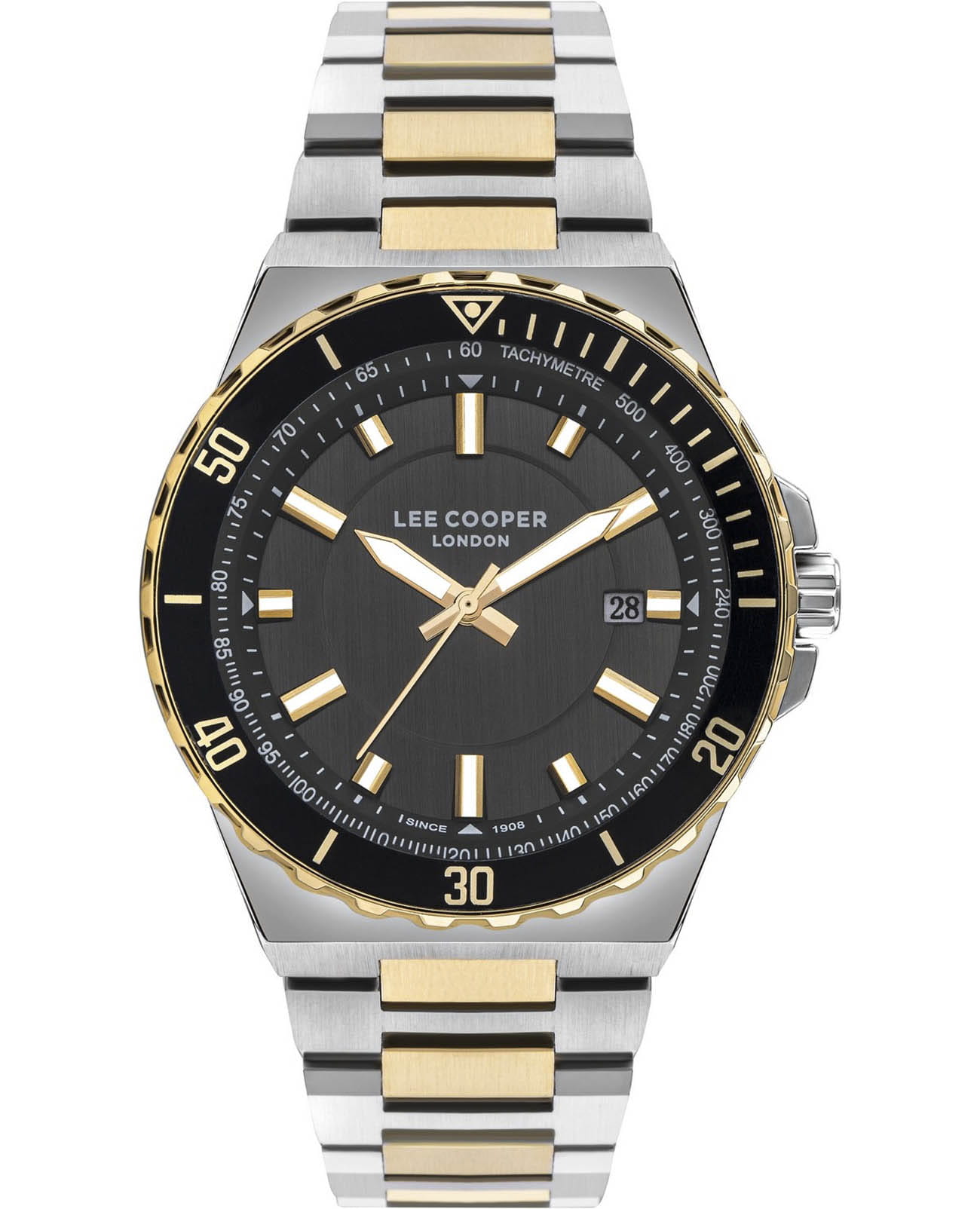 Мужские кварцевые часы Lee Cooper LC07622.260 — это стильный аксессуар с классическим дизайном и спортивными акцентами. Корпус диаметром 45 мм выполнен из суперметалла с частичным IP-покрытиемIP-покрытиеМетод ионного напыления. Демонстрирует повышенную устойчивость к истиранию, окислению и химическим веществам. Под воздействием высокого давления и температуры около 1500°C молекулы металла надёжно соединяются с частицами корпуса часов. жёлтого золота. Циферблат чёрного цвета оформлен индексами и дополнен окошком даты в положении 3 часов. Шкала тахиметраТахиметрРазмеченная шкала, располагается на ободке или безеле часов. Тахиметр позволяет рассчитать скорость на определённом участке пути, расстояние измеряется в километрах или милях. на безеле позволяет измерять среднюю скорость. Циферблат защищён минеральным стекломМинеральное стеклоМинеральное стекло представляет собой искусственно выращенный минерал кварца. Такое стекло отличается особой устойчивостью к повреждениям и царапинам. Уступает по некоторым качествам сапфировому стеклу.. Стрелки и метки с люминесцентным покрытиемЛюминесцентное покрытиеПозволяет считывать показания времени в темноте. Производители наносят на стрелки, часовые индексы, безель или поверхность циферблата светонакопительный состав, дающий холодное свечение., обеспечивающим хорошую читаемость в темноте. Часы оснащены двухцветным стальным браслетом с IP-покрытиемIP-покрытиеМетод ионного напыления. Демонстрирует повышенную устойчивость к истиранию, окислению и химическим веществам. Под воздействием высокого давления и температуры около 1500°C молекулы металла надёжно соединяются с частицами корпуса часов. на раскладной застёжкеРаскладная застёжкаТакой тип застёжки используется только на браслетах из металла. Она никогда не раскрывается полностью, происходит разделение на 2 и более частей. Раскладывающая застёжка снизит вероятность потери часов к минимуму.. Водонепроницаемость 50 м позволяет использовать часы для плавания и повседневного ношения. Универсальный выбор для тех, кто ценит надёжность и выразительный стиль.