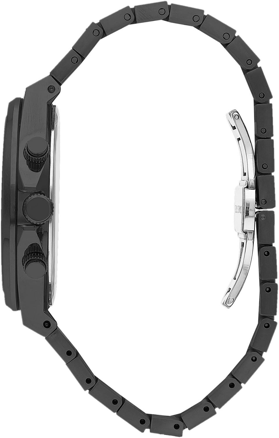 Мужские наручные часы Lee Cooper LC07717.650 — элегантная модель с функциональными возможностями для повседневного использования. Изысканный корпус из суперметалла с IP-покрытиемIP-покрытиеМетод ионного напыления. Демонстрирует повышенную устойчивость к истиранию, окислению и химическим веществам. Под воздействием высокого давления и температуры около 1500°C молекулы металла надёжно соединяются с частицами корпуса часов. черного цвета придаёт часам классический и современный вид. Чёрный циферблат оснащён дополнительными индикаторами и функцией хронографХронографФункция позволяет измерять отрезки времени с особой точностью: часы, минуты, секунды. Верным признаком хронографа является наличие на циферблате 3 дополнительных окошек-счётчиков., что позволяет измерять временные интервалы с высокой точностью. Стрелки покрыты люминесцентным покрытиемЛюминесцентное покрытиеПозволяет считывать показания времени в темноте. Производители наносят на стрелки, часовые индексы, безель или поверхность циферблата светонакопительный состав, дающий холодное свечение., обеспечивая удобное считывание показаний в условиях недостаточного освещения. Циферблат защищён минеральным стекломМинеральное стеклоМинеральное стекло представляет собой искусственно выращенный минерал кварца. Такое стекло отличается особой устойчивостью к повреждениям и царапинам. Уступает по некоторым качествам сапфировому стеклу., устойчивым к царапинам. Часы работают на кварцевом механизме, обеспечивающем точность хода. Элегантный браслет из нержавеющей стали с IP-покрытиемIP-покрытиеМетод ионного напыления. Демонстрирует повышенную устойчивость к истиранию, окислению и химическим веществам. Под воздействием высокого давления и температуры около 1500°C молекулы металла надёжно соединяются с частицами корпуса часов. на застёжке-бабочке с кнопкамиЗастёжка "бабочка"Такой вид застёжки дополняется предохранителями, помогающими избежать случайного раскрытия браслета. Обладают изящным исполнением. гарантирует удобную посадку и надёжную фиксацию на запястье. Водозащита 50 метров защищает часы от брызг и дождя, делая их подходящими для повседневного использования.