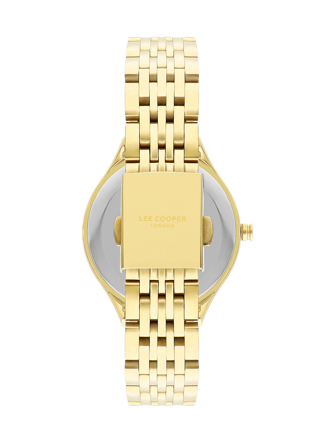 Женские часы Lee Cooper LC07821.120 выполнены в классическом стиле и сочетают строгий дизайн с надёжным механизмом. Модель оснащена кварцевым механизмом, обеспечивающим точность хода и минимальное обслуживание. Корпус круглой формы имеет размер 36 мм, изготовлен из суперметалла с IP-покрытиемIP-покрытиеМетод ионного напыления. Демонстрирует повышенную устойчивость к истиранию, окислению и химическим веществам. Под воздействием высокого давления и температуры около 1500°C молекулы металла надёжно соединяются с частицами корпуса часов., гарантирует комфорт при ношении. Перламутровый циферблат дополнен штрихами для чёткого отсчёта времени. Защиту циферблата обеспечивает минеральное стеклоМинеральное стеклоМинеральное стекло представляет собой искусственно выращенный минерал кварца. Такое стекло отличается особой устойчивостью к повреждениям и царапинам. Уступает по некоторым качествам сапфировому стеклу., устойчивое к мелким механическим повреждениям. Стальной браслет с IP-покрытиемIP-покрытиеМетод ионного напыления. Демонстрирует повышенную устойчивость к истиранию, окислению и химическим веществам. Под воздействием высокого давления и температуры около 1500°C молекулы металла надёжно соединяются с частицами корпуса часов. на раскладной застёжкеРаскладная застёжкаТакой тип застёжки используется только на браслетах из металла. Она никогда не раскрывается полностью, происходит разделение на 2 и более частей. Раскладывающая застёжка снизит вероятность потери часов к минимуму. гарантирует удобную посадку и надёжную фиксацию на запястье. Водозащита 30WR позволяет использовать часы в повседневных условиях без риска повреждения от случайных брызг воды. Это сочетание классического дизайна, прочности материалов и качества исполнения для уверенных в себе женщин.