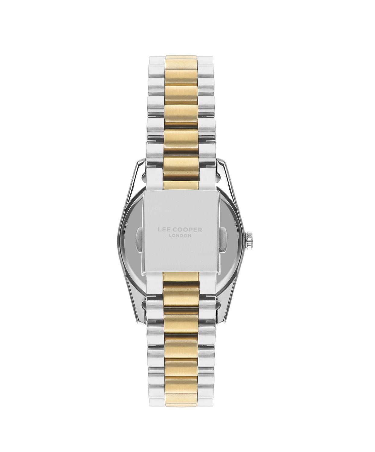 Женские часы Lee Cooper LC07825.220 выполнены в классическом стиле и сочетают строгий дизайн с надёжным механизмом. Модель оснащена кварцевым механизмом, обеспечивающим точность хода и минимальное обслуживание. Корпус с диаметром 36 мм, изготовлен из суперметалла с изысканным неподвижным безелемБезельВнешний ободок, закрепляющий стекло. В спортивных часах так называется поворотное кольцо с делениями на циферблате, выполняет роль таймера – замеряет отрезки времени на шкале. Неподвижный безель – элемент декора. Однонаправленно вращающийся безель на дайверских часах позволяет фиксировать моменты погружения и выныривания на поверхность. с IP-покрытиемIP-покрытиеМетод ионного напыления. Демонстрирует повышенную устойчивость к истиранию, окислению и химическим веществам. Под воздействием высокого давления и температуры около 1500°C молекулы металла надёжно соединяются с частицами корпуса часов., гарантирует комфорт при ношении. Циферблат дополнен штрихами и римскими цифрами для чёткого отсчёта времени. Защиту циферблата обеспечивает минеральное стеклоМинеральное стеклоМинеральное стекло представляет собой искусственно выращенный минерал кварца. Такое стекло отличается особой устойчивостью к повреждениям и царапинам. Уступает по некоторым качествам сапфировому стеклу., устойчивое к мелким механическим повреждениям. Стальной браслет с частичным IP-покрытиемIP-покрытиеМетод ионного напыления. Демонстрирует повышенную устойчивость к истиранию, окислению и химическим веществам. Под воздействием высокого давления и температуры около 1500°C молекулы металла надёжно соединяются с частицами корпуса часов. на раскладной застёжкеРаскладная застёжкаТакой тип застёжки используется только на браслетах из металла. Она никогда не раскрывается полностью, происходит разделение на 2 и более частей. Раскладывающая застёжка снизит вероятность потери часов к минимуму. гарантирует удобную посадку и надёжную фиксацию на запястье. Стрелки с люминесцентным покрытиемЛюминесцентное покрытиеПозволяет считывать показания времени в темноте. Производители наносят на стрелки, часовые индексы, безель или поверхность циферблата светонакопительный состав, дающий холодное свечение., обеспечивающим хорошую читаемость в темноте. Водозащита 30WR позволяет использовать часы в повседневных условиях без риска повреждения от случайных брызг воды. Это сочетание классического дизайна, прочности материалов и качества исполнения для уверенных в себе женщин.