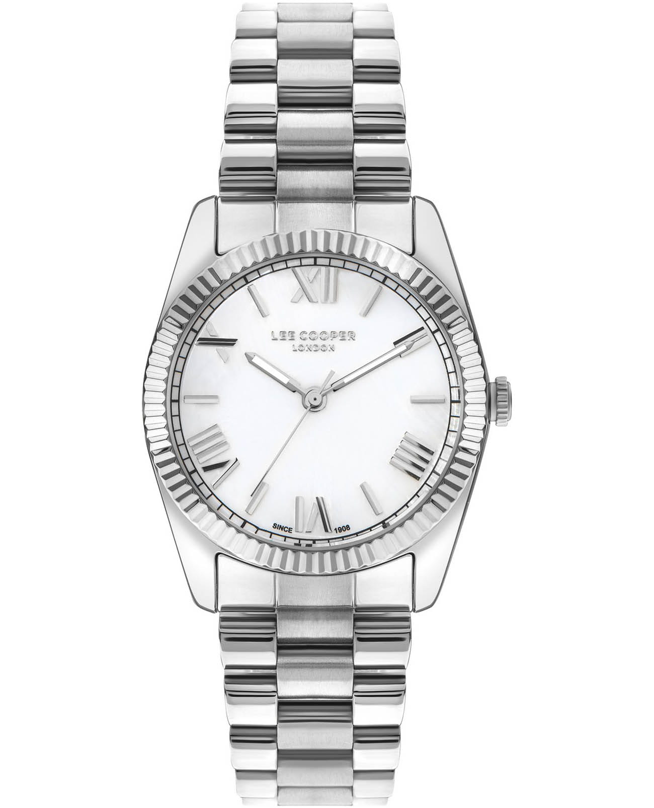 Женские часы Lee Cooper LC07825.320 выполнены в классическом стиле и сочетают строгий дизайн с надёжным механизмом. Модель оснащена кварцевым механизмом, обеспечивающим точность хода и минимальное обслуживание. Корпус с диаметром 36 мм, изготовлен из суперметалла, гарантирует комфорт при ношении. Изящный циферблат дополнен штрихами и римскими цифрами для чёткого отсчёта времени. Защиту циферблата обеспечивает минеральное стеклоМинеральное стеклоМинеральное стекло представляет собой искусственно выращенный минерал кварца. Такое стекло отличается особой устойчивостью к повреждениям и царапинам. Уступает по некоторым качествам сапфировому стеклу., устойчивое к мелким механическим повреждениям. Стальной браслет на раскладной застёжкеРаскладная застёжкаТакой тип застёжки используется только на браслетах из металла. Она никогда не раскрывается полностью, происходит разделение на 2 и более частей. Раскладывающая застёжка снизит вероятность потери часов к минимуму. гарантирует удобную посадку и надёжную фиксацию на запястье. Стрелки с люминесцентным покрытиемЛюминесцентное покрытиеПозволяет считывать показания времени в темноте. Производители наносят на стрелки, часовые индексы, безель или поверхность циферблата светонакопительный состав, дающий холодное свечение., обеспечивающим хорошую читаемость в темноте. Водозащита 30WR позволяет использовать часы в повседневных условиях без риска повреждения от случайных брызг воды. Это сочетание классического дизайна, прочности материалов и качества исполнения для уверенных в себе женщин.