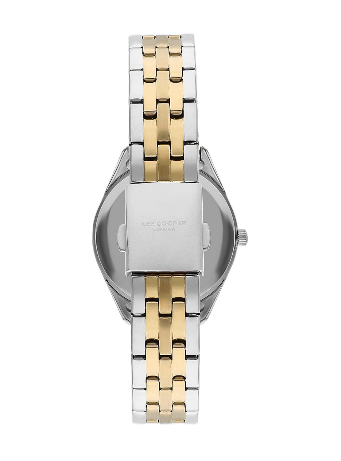 Женские часы Lee Cooper LC07833.260 — это стильное сочетание элегантности и современного дизайна. Изысканный круглый корпус диаметром 34 мм выполнен из суперметалла с неподвижным безелемБезельВнешний ободок, закрепляющий стекло. В спортивных часах так называется поворотное кольцо с делениями на циферблате, выполняет роль таймера – замеряет отрезки времени на шкале. Неподвижный безель – элемент декора. Однонаправленно вращающийся безель на дайверских часах позволяет фиксировать моменты погружения и выныривания на поверхность. с IP-покрытиемIP-покрытиеМетод ионного напыления. Демонстрирует повышенную устойчивость к истиранию, окислению и химическим веществам. Под воздействием высокого давления и температуры около 1500°C молекулы металла надёжно соединяются с частицами корпуса часов. золотого цвета, что придает модели особый блеск. Черный циферблат защищен минеральным стекломМинеральное стеклоМинеральное стекло представляет собой искусственно выращенный минерал кварца. Такое стекло отличается особой устойчивостью к повреждениям и царапинам. Уступает по некоторым качествам сапфировому стеклу., обеспечивающим устойчивость к царапинам. Метки в виде лаконичных штрихов. Часы оснащены надежным кварцевым механизмом, а изящный стальной браслет с частичным IP-покрытиемIP-покрытиеМетод ионного напыления. Демонстрирует повышенную устойчивость к истиранию, окислению и химическим веществам. Под воздействием высокого давления и температуры около 1500°C молекулы металла надёжно соединяются с частицами корпуса часов. на раскладной застёжкеРаскладная застёжкаТакой тип застёжки используется только на браслетах из металла. Она никогда не раскрывается полностью, происходит разделение на 2 и более частей. Раскладывающая застёжка снизит вероятность потери часов к минимуму. гарантирует комфортную посадку на запястье. Водозащита 30 метров защищает модель от случайных брызг и дождя. Lee Cooper  — отличный выбор для тех, кто ценит утонченность и качество.