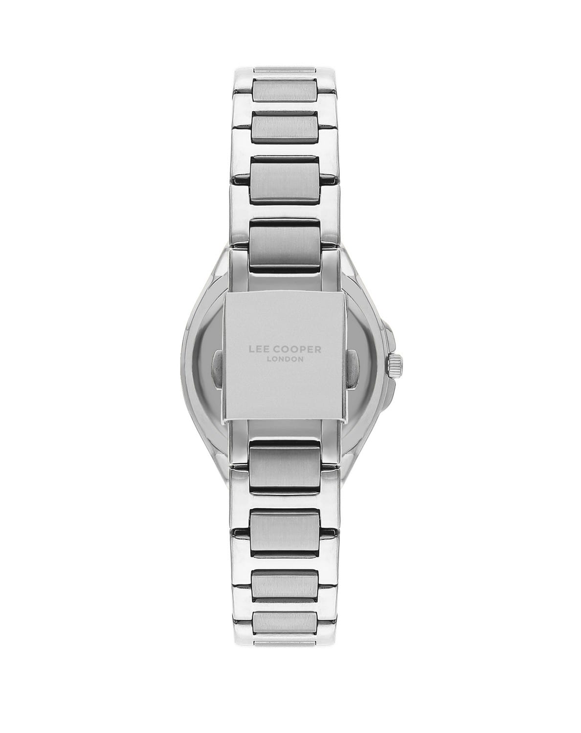 Женские наручные часы Lee Cooper LC07844.370 оснащены точным кварцевым механизмом, обеспечивающим высокую надежность и точность хода. Корпус часов изготовлен из суперметалла, что гарантирует долговечность и устойчивость к повреждениям. Три субдисплея отображают дату, день недели и 24-часовой формат времени, что добавляет функциональности и практичности. Для защиты циферблата используется минеральное стеклоМинеральное стеклоМинеральное стекло представляет собой искусственно выращенный минерал кварца. Такое стекло отличается особой устойчивостью к повреждениям и царапинам. Уступает по некоторым качествам сапфировому стеклу., устойчивое к царапинам и механическим повреждениям. Метки покрыты люминесцентным покрытиемЛюминесцентное покрытиеПозволяет считывать показания времени в темноте. Производители наносят на стрелки, часовые индексы, безель или поверхность циферблата светонакопительный состав, дающий холодное свечение., обеспечивающим отличную читаемость в темноте. Интегрированный браслет изготовлен из нержавеющей стали, которая славится своей долговечностью и возможностью полировки. Браслет гармонично дополняет дизайн часов и обеспечивает комфортное ношение в течение дня благодаря раскладной застёжкеРаскладная застёжкаТакой тип застёжки используется только на браслетах из металла. Она никогда не раскрывается полностью, происходит разделение на 2 и более частей. Раскладывающая застёжка снизит вероятность потери часов к минимуму.. Эти часы сочетают в себе стиль и функциональность, что делает их универсальным аксессуаром, подходящим к любому образу. Модель станет прекрасным подарком. Часы обладают водонепроницаемостью до 50 метров (5 АТМ), что позволяет использовать их в повседневной жизни, включая контакт с водой при мытье рук или дожде.