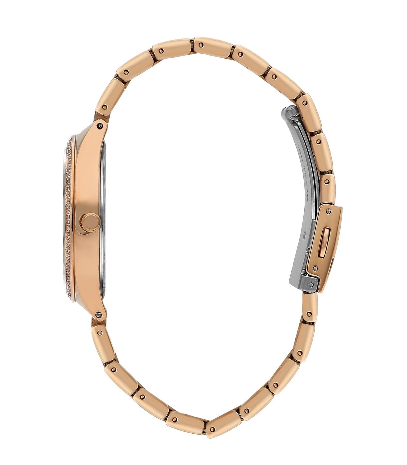 Женские часы Lee Cooper LC07863.430 — это стильное сочетание элегантности и современного дизайна. Круглый корпус диаметром 34 мм выполнен из суперметалла с IP-покрытиемIP-покрытиеМетод ионного напыления. Демонстрирует повышенную устойчивость к истиранию, окислению и химическим веществам. Под воздействием высокого давления и температуры около 1500°C молекулы металла надёжно соединяются с частицами корпуса часов. золотого цвета, а неподвижный безельБезельВнешний ободок, закрепляющий стекло. В спортивных часах так называется поворотное кольцо с делениями на циферблате, выполняет роль таймера – замеряет отрезки времени на шкале. Неподвижный безель – элемент декора. Однонаправленно вращающийся безель на дайверских часах позволяет фиксировать моменты погружения и выныривания на поверхность. украшен цирконами, придающими модели особый блеск. Серебристый циферблат защищен минеральным стекломМинеральное стеклоМинеральное стекло представляет собой искусственно выращенный минерал кварца. Такое стекло отличается особой устойчивостью к повреждениям и царапинам. Уступает по некоторым качествам сапфировому стеклу., обеспечивающим устойчивость к царапинам. Метки в виде штрихов. Часы оснащены надежным кварцевым механизмом, а металлический браслет с IP-покрытиемIP-покрытиеМетод ионного напыления. Демонстрирует повышенную устойчивость к истиранию, окислению и химическим веществам. Под воздействием высокого давления и температуры около 1500°C молекулы металла надёжно соединяются с частицами корпуса часов. на раскладной застёжкеРаскладная застёжкаТакой тип застёжки используется только на браслетах из металла. Она никогда не раскрывается полностью, происходит разделение на 2 и более частей. Раскладывающая застёжка снизит вероятность потери часов к минимуму. гарантирует комфортную посадку на запястье. Мультифункциональная модель с индикацией даты, дня недели, с дополнительным 24-х часовым индикатором. Водозащита 30 метров защищает модель от случайных брызг и дождя. Lee Cooper — отличный выбор для тех, кто ценит утонченность и качество.