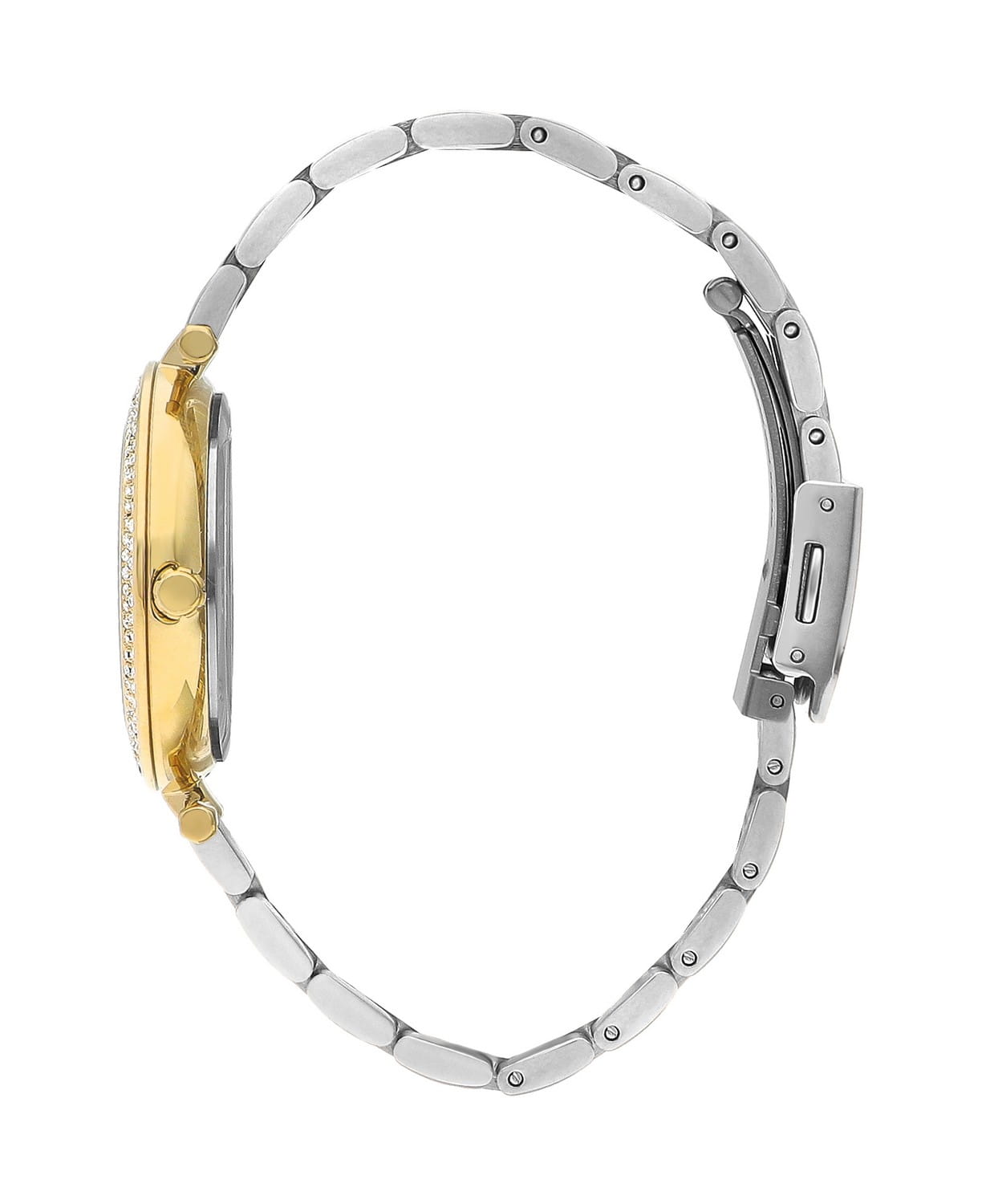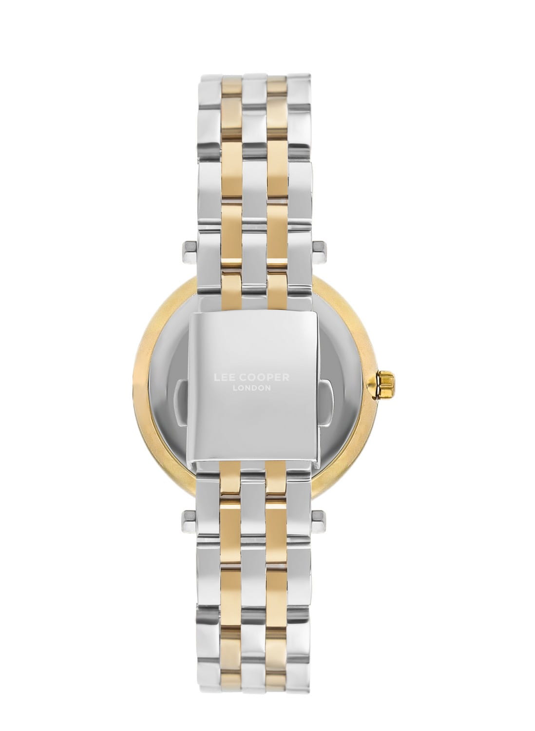 Женские часы Lee Cooper LC07864.230 — это стильное сочетание элегантности и современного дизайна. Круглый корпус диаметром 34 мм выполнен из суперметалла с IP-покрытиемIP-покрытиеМетод ионного напыления. Демонстрирует повышенную устойчивость к истиранию, окислению и химическим веществам. Под воздействием высокого давления и температуры около 1500°C молекулы металла надёжно соединяются с частицами корпуса часов., а неподвижный безельБезельВнешний ободок, закрепляющий стекло. В спортивных часах так называется поворотное кольцо с делениями на циферблате, выполняет роль таймера – замеряет отрезки времени на шкале. Неподвижный безель – элемент декора. Однонаправленно вращающийся безель на дайверских часах позволяет фиксировать моменты погружения и выныривания на поверхность. инкрустирован 140 фианитами, придающими модели особый блеск. Серебристый циферблат защищен минеральным стекломМинеральное стеклоМинеральное стекло представляет собой искусственно выращенный минерал кварца. Такое стекло отличается особой устойчивостью к повреждениям и царапинам. Уступает по некоторым качествам сапфировому стеклу., обеспечивающим устойчивость к царапинам. Метки в виде штрихов. Часы оснащены надежным кварцевым механизмом, а стальной браслет с частичным IP-покрытиемIP-покрытиеМетод ионного напыления. Демонстрирует повышенную устойчивость к истиранию, окислению и химическим веществам. Под воздействием высокого давления и температуры около 1500°C молекулы металла надёжно соединяются с частицами корпуса часов. на раскладной застёжкеРаскладная застёжкаТакой тип застёжки используется только на браслетах из металла. Она никогда не раскрывается полностью, происходит разделение на 2 и более частей. Раскладывающая застёжка снизит вероятность потери часов к минимуму. гарантирует комфортную посадку на запястье. Водозащита 30 метров защищает модель от случайных брызг и дождя. Lee Cooper — отличный выбор для тех, кто ценит утонченность и качество.