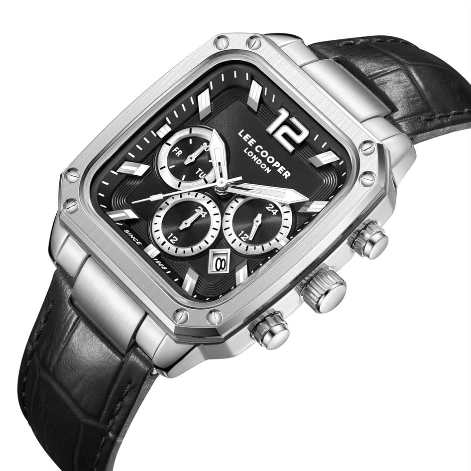 Мужские наручные часы Lee Cooper LC08184.351 оснащены кварцевым механизмом, обеспечивающий высокую точность хода и надежность. Элегантный корпус часов выполнен из суперметалла серебристого цвета, что делает их устойчивыми к внешним воздействиям и придает благородный вид. Циферблат украшен классическими стрелками и метками с люминесцентным покрытиемЛюминесцентное покрытиеПозволяет считывать показания времени в темноте. Производители наносят на стрелки, часовые индексы, безель или поверхность циферблата светонакопительный состав, дающий холодное свечение., гармонично дополняющим общий дизайн модели. Для защиты циферблата используется минеральное стеклоМинеральное стеклоМинеральное стекло представляет собой искусственно выращенный минерал кварца. Такое стекло отличается особой устойчивостью к повреждениям и царапинам. Уступает по некоторым качествам сапфировому стеклу., устойчивое к царапинам и механическим повреждениям. Корпус размером 39 мм x 49 мм, что делает часы заметными и подходящими. Кожаный ремешок на стандартной застёжке обеспечивает комфортное и безопасное ношение. Окошко даты находится в положении между 4 и 5 часов. Часы обладают водонепроницаемостью до 30 метров (3 АТМ), что позволяет использовать их в повседневной жизни, включая контакт с водой при мытье рук или дожде. Эти часы станут идеальным выбором для мужчин, ценящих стиль, качество и функциональность.