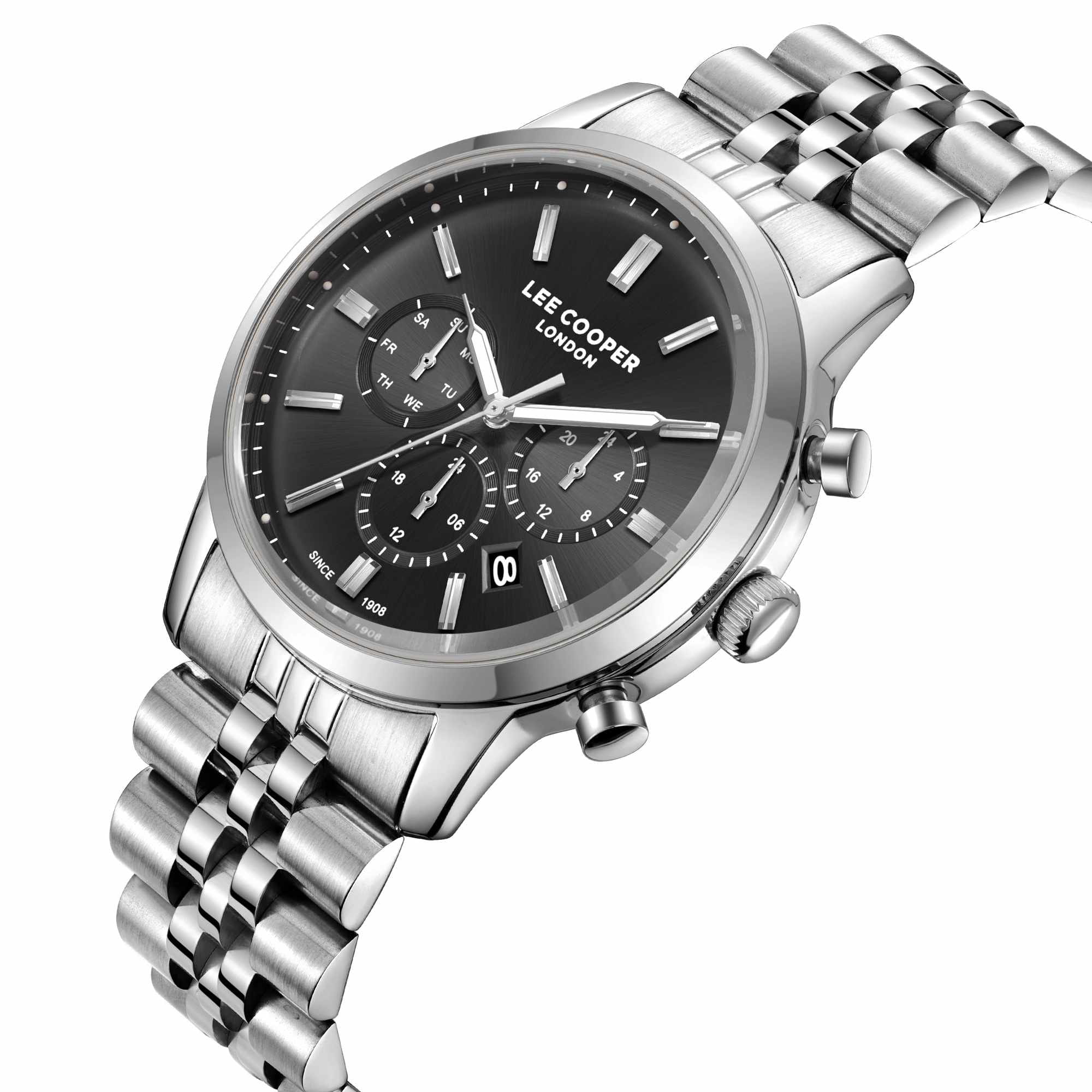 Мужские наручные часы Lee Cooper LC08187.350 оснащены кварцевым механизмом, обеспечивающий высокую точность хода и надежность. Элегантный корпус часов выполнен из суперметалла серебристого цвета, что делает их устойчивыми к внешним воздействиям и придает благородный вид. Циферблат украшен классическими стрелками с люминесцентным покрытиемЛюминесцентное покрытиеПозволяет считывать показания времени в темноте. Производители наносят на стрелки, часовые индексы, безель или поверхность циферблата светонакопительный состав, дающий холодное свечение., гармонично дополняющим общий дизайн модели. Для защиты циферблата используется минеральное стеклоМинеральное стеклоМинеральное стекло представляет собой искусственно выращенный минерал кварца. Такое стекло отличается особой устойчивостью к повреждениям и царапинам. Уступает по некоторым качествам сапфировому стеклу., устойчивое к царапинам и механическим повреждениям. Корпус имеет круглую форму диаметром 43 мм, что делает часы заметными и подходящими. Браслет из стали оснащен раскладной застёжкойРаскладная застёжкаТакой тип застёжки используется только на браслетах из металла. Она никогда не раскрывается полностью, происходит разделение на 2 и более частей. Раскладывающая застёжка снизит вероятность потери часов к минимуму., обеспечивающим комфортное и безопасное ношение. Вынесенный циферблат с 24-х часовым указателем времени, индикацией даты и дня недели. Окошко даты находится в положении между 4 и 5 часов. Часы обладают водонепроницаемостью до 30 метров (3 АТМ), что позволяет использовать их в повседневной жизни, включая контакт с водой при мытье рук или дожде. Эти часы станут идеальным выбором для мужчин, ценящих стиль, качество и функциональность.