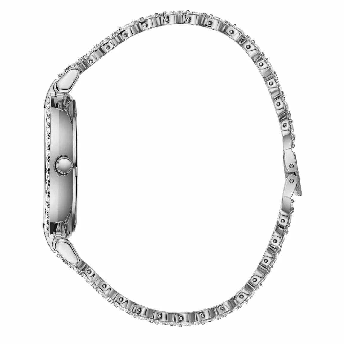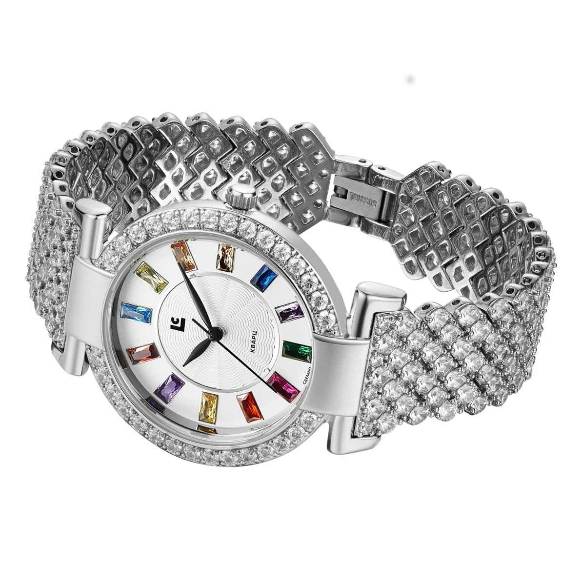 Lincor 4604В-1 — женские кварцевые часы с корпусом из серебристой нержавеющей стали диаметром 36 мм и стальным браслетом на ювелирной застежке. Циферблат с контрастными метками и стрелками облегчает считывание времени. Минеральное стеклоМинеральное стеклоМинеральное стекло представляет собой искусственно выращенный минерал кварца. Такое стекло отличается особой устойчивостью к повреждениям и царапинам. Уступает по некоторым качествам сапфировому стеклу. защищает поверхность от царапин. БезельБезельВнешний ободок, закрепляющий стекло. В спортивных часах так называется поворотное кольцо с делениями на циферблате, выполняет роль таймера – замеряет отрезки времени на шкале. Неподвижный безель – элемент декора. Однонаправленно вращающийся безель на дайверских часах позволяет фиксировать моменты погружения и выныривания на поверхность. и браслет инкрустированы кристаллами. Водозащита 30 м предотвращает попадание брызг и дождя, плавание не предусмотрено.