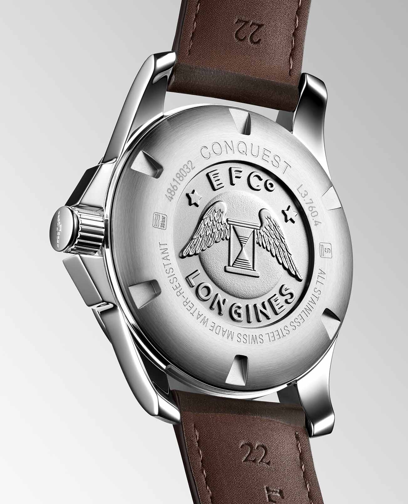 Модель оснащена кварцевым механизмом Longines L157 с функцией индикации окончания срока службы батареи (E.O.L.).
