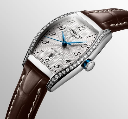 Женские швейцарские механические часы с автоподзаводом Longines Evidenza L2.142.0.70.4. Сапфировое стеклоСапфировое стеклоПрочный и надёжный материал из кристалла сапфира синтетического происхождения, характеризующийся особой твёрдостью и устойчивостью к царапинам и повреждениям. устойчивое к появлению царапин, обладающее высокой прозрачностью. Корпус часов изготовлен из нержавеющей стали и инкрустирован 44 бриллиантами группы Top Wesselton VVS общим весом 0,358 карата. Окошко даты в положении 6 часов. Класс водозащиты: 30 метров, позволит защитить корпус от случайных брызг или капель дождя. Ремешок из кожи аллигатора на раскладной застёжкеРаскладная застёжкаТакой тип застёжки используется только на браслетах из металла. Она никогда не раскрывается полностью, происходит разделение на 2 и более частей. Раскладывающая застёжка снизит вероятность потери часов к минимуму..