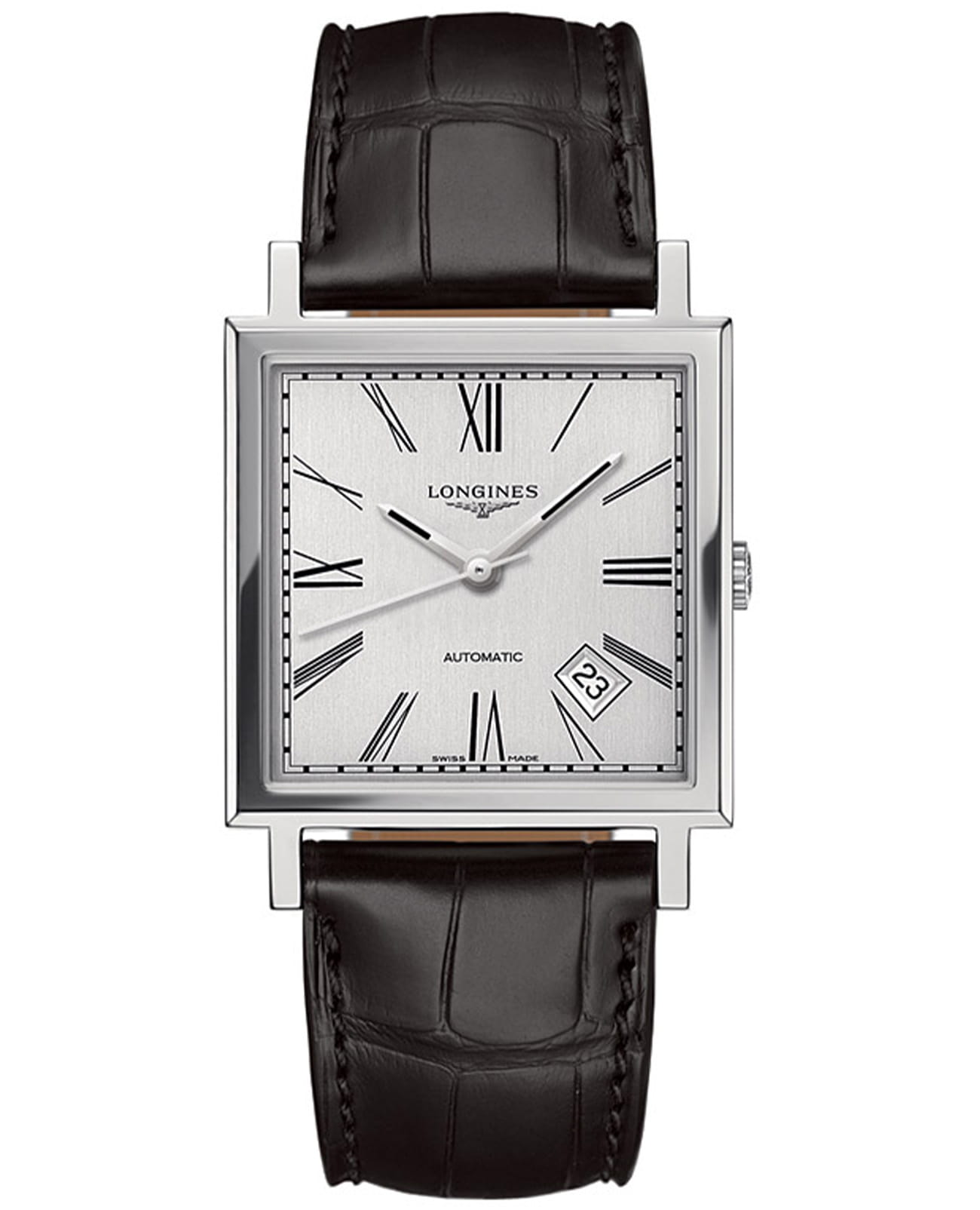 Мужские механические швейцарские часы с автоподзаводом Longines Heritage 1968 L2.792.4.71.0, механический механизм (автоматический калибр) с высокой точностью. Сапфировое стеклоСапфировое стеклоПрочный и надёжный материал из кристалла сапфира синтетического происхождения, характеризующийся особой твёрдостью и устойчивостью к царапинам и повреждениям. устойчивое к появлению царапин, обладающее высокой прозрачностью. Класс водозащиты: 30 метров, позволит защитить корпус от случайных брызг или капель дождя. Корпус часов изготовлен из стали. Кожаный ремешок из кожи аллигатора на стандартной застёжке. Окошко даты находится в положении между 4 и 5 часов.
