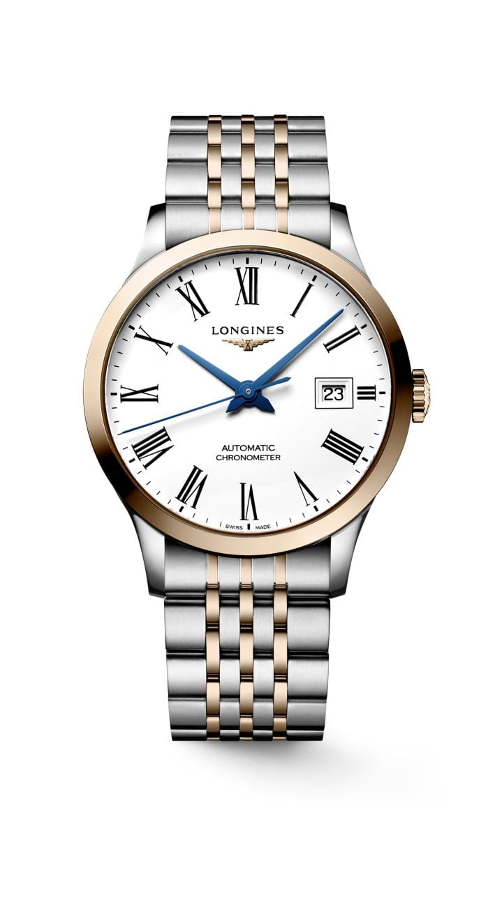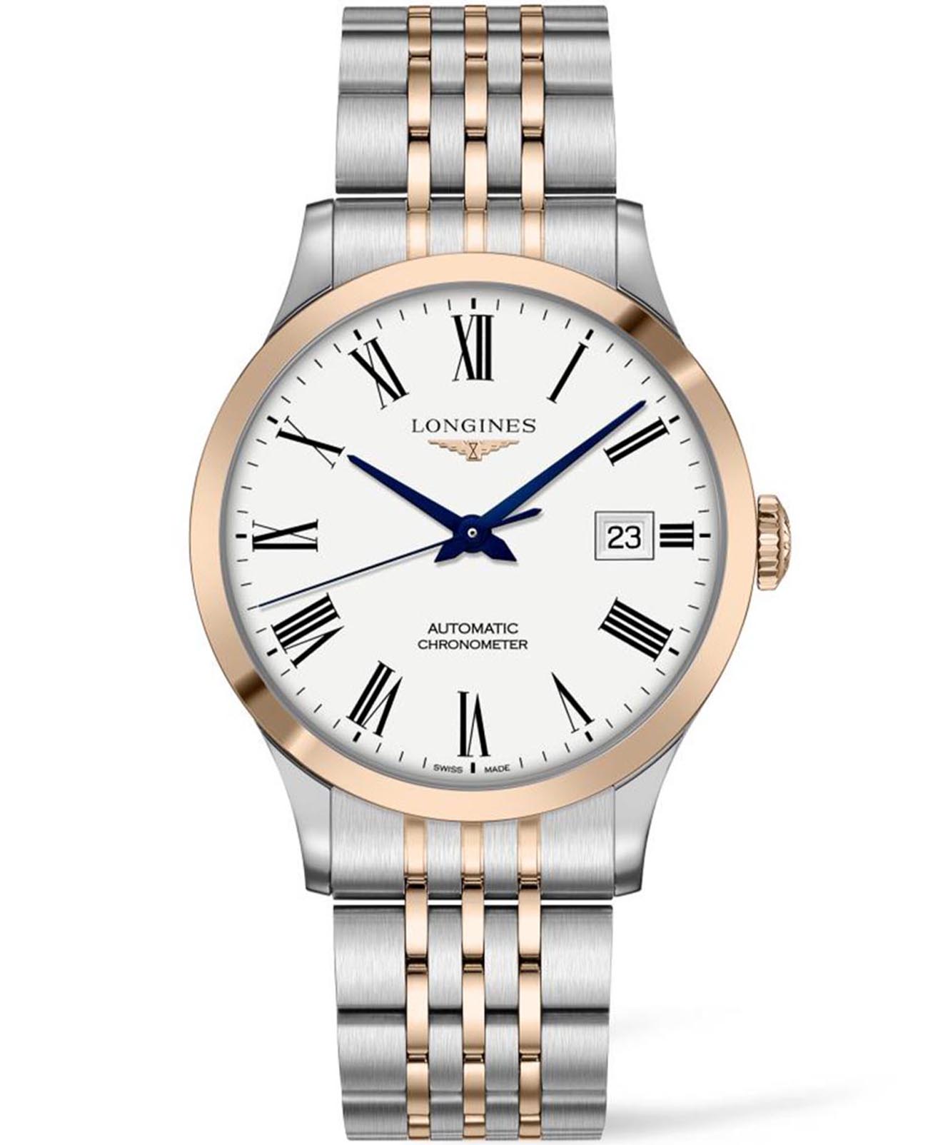Мужские швейцарские механические часы с автоподзаводом Longines Record Collection L2.821.5.11.7. Сапфировое стеклоСапфировое стеклоПрочный и надёжный материал из кристалла сапфира синтетического происхождения, характеризующийся особой твёрдостью и устойчивостью к царапинам и повреждениям. устойчивое к появлению царапин, обладающее высокой прозрачностью. Корпус изготовлен из нержавещей стали с 18-каратным золотом18-каратное золотоОбозначение по каратной системе пробирования, оно показывает, сколько драгоценного металла содержится в изделии. 18 карат - в составе 75% чистого золота, соответствует 750 пробе.