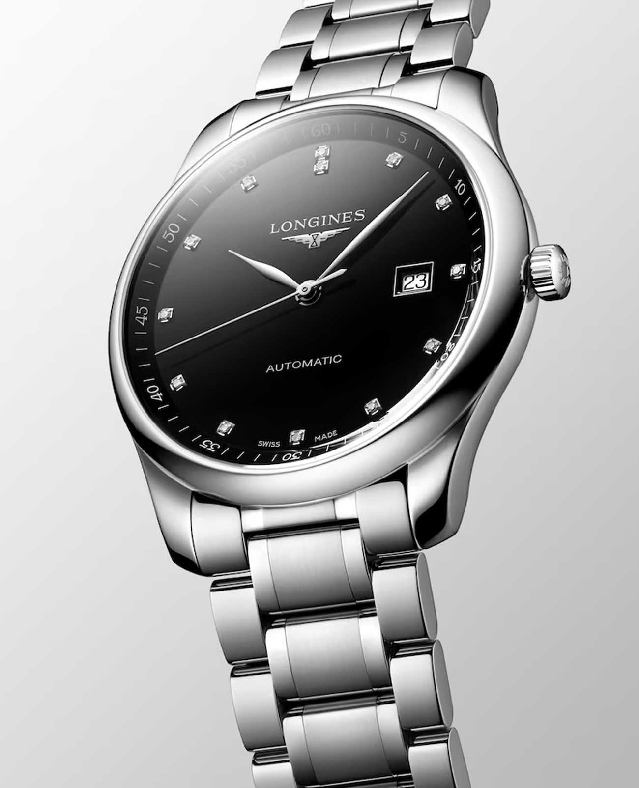 Швейцарские механические часы Longines Master Collection L2.893.4.57.6. Сапфировое стеклоСапфировое стеклоПрочный и надёжный материал из кристалла сапфира синтетического происхождения, характеризующийся особой твёрдостью и устойчивостью к царапинам и повреждениям. устойчивое к появлению царапин, обладающее высокой прозрачностью. Корпус часов изготовлен из нержавеющей стали. Циферблат с 13 бриллиантами группы Top Wesselton VS-SI общим весом 0.059 карата. Окошко даты в положении 3 часа. Автоматический механизм с частотой баланса 25 200 полуколебаний в час и запасом хода, которого хватает примерно на 72 часа работы. Класс водозащиты: 30 метров, позволит защитить корпус от случайных брызг или капель дождя. Стальной браслет на застёжке «бабочка» с кнопкамиЗастёжка "бабочка"Такой вид застёжки дополняется предохранителями, помогающими избежать случайного раскрытия браслета. Обладают изящным исполнением. .