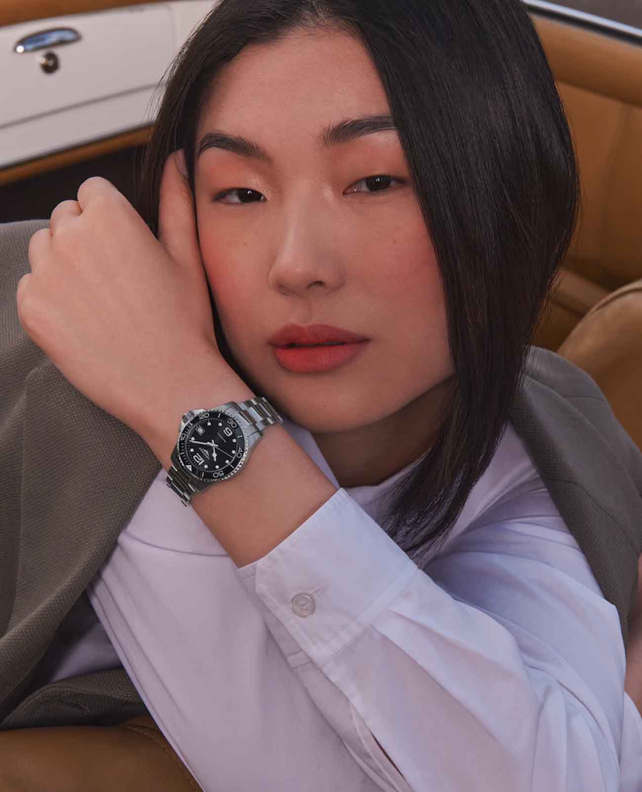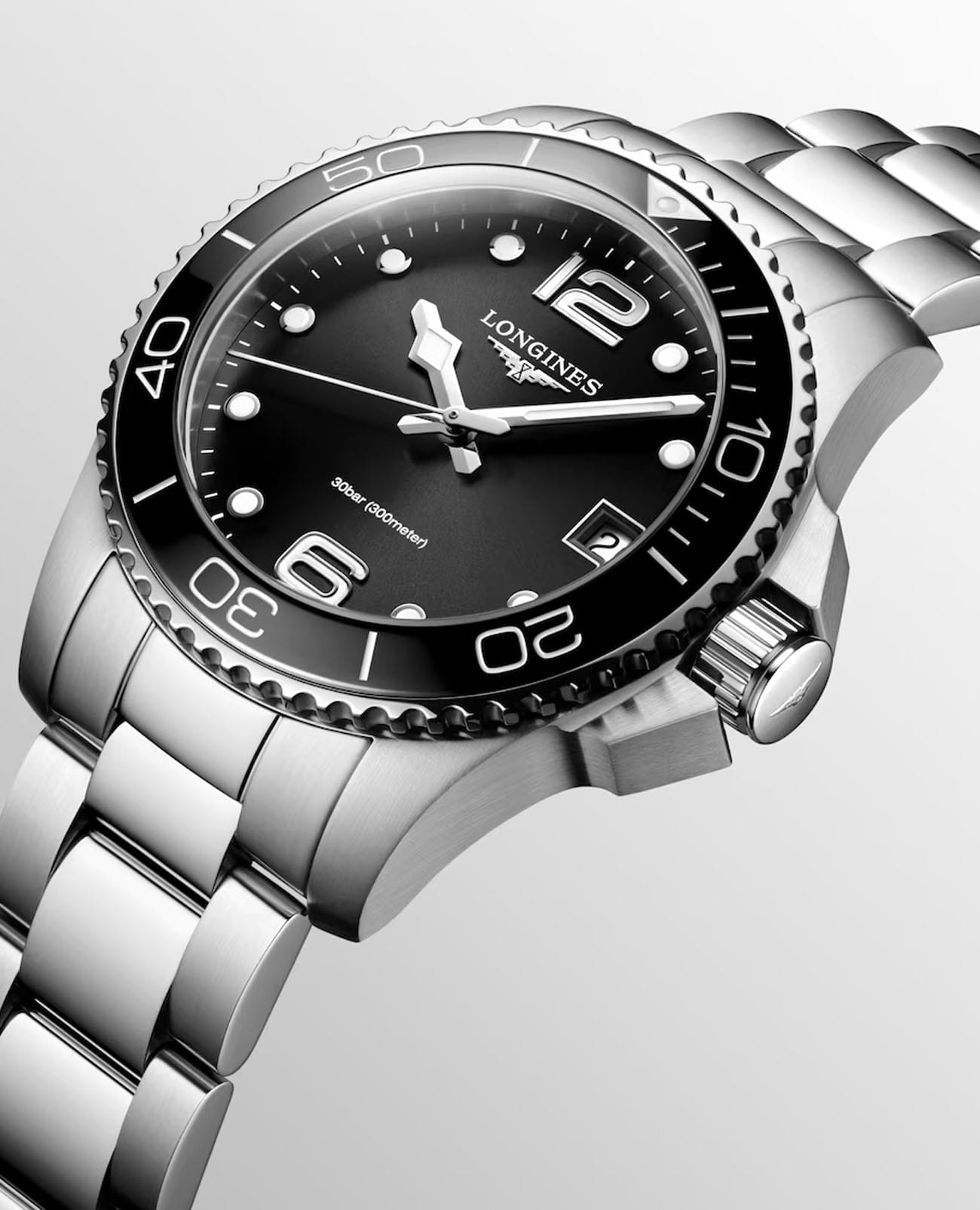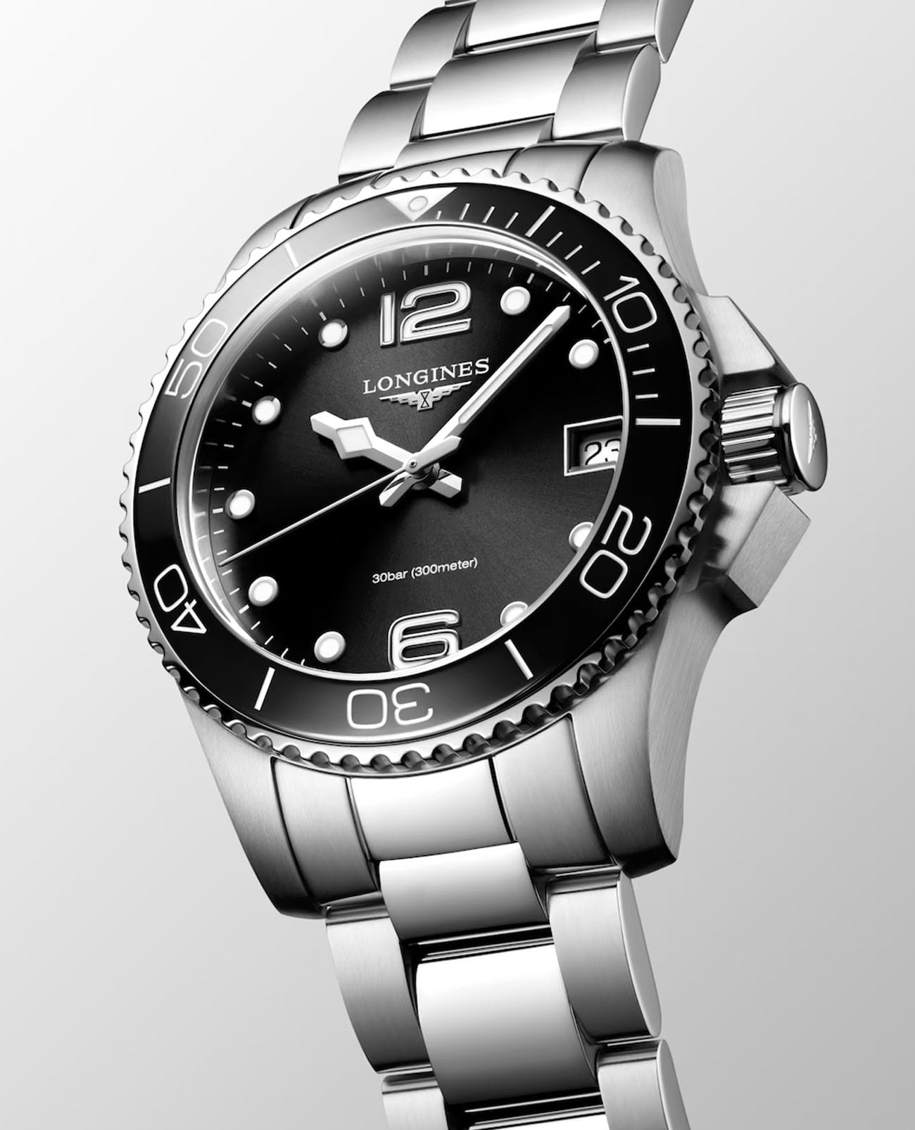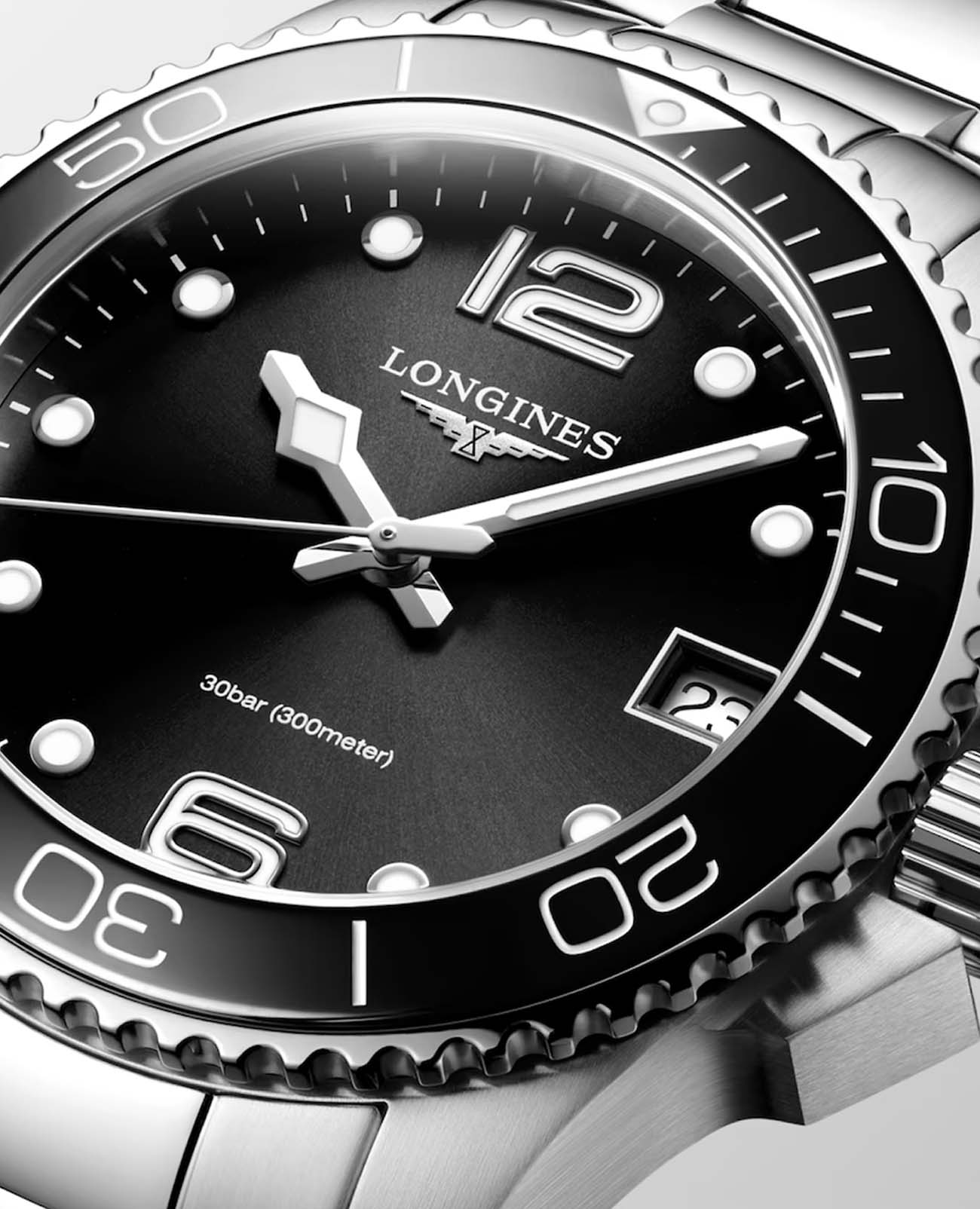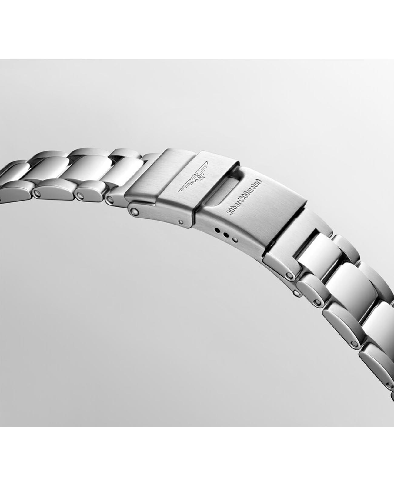 Женские швейцарские часы для дайвинга Longines HydroConquest L3.370.4.56.6, кварцевый механизм с высокой точностью. Сапфировое стеклоСапфировое стеклоПрочный и надёжный материал из кристалла сапфира синтетического происхождения, характеризующийся особой твёрдостью и устойчивостью к царапинам и повреждениям. с многослойным антибликовым покрытием с обеих сторон, устойчивое к появлению царапин, обладающее высокой прозрачностью. Корпус часов изготовлен из стали. Вращающийся безельБезельВнешний ободок, закрепляющий стекло. В спортивных часах так называется поворотное кольцо с делениями на циферблате, выполняет роль таймера – замеряет отрезки времени на шкале. Неподвижный безель – элемент декора. Однонаправленно вращающийся безель на дайверских часах позволяет фиксировать моменты погружения и выныривания на поверхность. из стали и керамики, защищенный от царапин, никогда не изнашивается и не выцветает. Стрелки и метки с люминесцентным покрытиемЛюминесцентное покрытиеПозволяет считывать показания времени в темноте. Производители наносят на стрелки, часовые индексы, безель или поверхность циферблата светонакопительный состав, дающий холодное свечение.. Окошко даты находится в положении 3 часов. Класс водозащиты: 300 метров, позволит плавать, нырять и заниматься другими водными видами спорта. Стальной браслет на раскладной застёжкеРаскладная застёжкаТакой тип застёжки используется только на браслетах из металла. Она никогда не раскрывается полностью, происходит разделение на 2 и более частей. Раскладывающая застёжка снизит вероятность потери часов к минимуму..