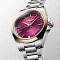Женские швейцарские механические часы с автоподзаводом Longines Conquest L3.430.5.98.6. Сапфировое стеклоСапфировое стеклоПрочный и надёжный материал из кристалла сапфира синтетического происхождения, характеризующийся особой твёрдостью и устойчивостью к царапинам и повреждениям. устойчивое к появлению царапин, обладающее высокой прозрачностью. Корпус часов изготовлен из нержавеющей стали. Циферблат выполнен по технологии Sunray (солнечные лучи). Стрелки с люминесцентным покрытиемЛюминесцентное покрытиеПозволяет считывать показания времени в темноте. Производители наносят на стрелки, часовые индексы, безель или поверхность циферблата светонакопительный состав, дающий холодное свечение.. Окошко даты в положении 6 часов. Прозрачная задняя крышка. Класс водозащиты: 100 метров, позволит плавать, нырять и заниматься другими водными видами спорта. Стальной браслет на застёжке-бабочке с кнопкамиЗастёжка "бабочка"Такой вид застёжки дополняется предохранителями, помогающими избежать случайного раскрытия браслета. Обладают изящным исполнением. . БезельБезельВнешний ободок, закрепляющий стекло. В спортивных часах так называется поворотное кольцо с делениями на циферблате, выполняет роль таймера – замеряет отрезки времени на шкале. Неподвижный безель – элемент декора. Однонаправленно вращающийся безель на дайверских часах позволяет фиксировать моменты погружения и выныривания на поверхность. из стали с 18-каратным золотом18-каратное золотоОбозначение по каратной системе пробирования, оно показывает, сколько драгоценного металла содержится в изделии. 18 карат - в составе 75% чистого золота, соответствует 750 пробе.