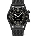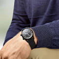 Циферблат отличается улучшенной читабельностью показателей благодаря крупной индикации времени, стрелками и метками с люминесцентной подсветкойЛюминесцентное покрытиеПозволяет считывать показания времени в темноте. Производители наносят на стрелки, часовые индексы, безель или поверхность циферблата светонакопительный состав, дающий холодное свечение., антибликовому покрытиюАнтибликовое покрытиеСлой оксида металла в 0,13-0,3 микрон, благодаря которому стекло часов не бликует и не отражает свет. Антибликовое покрытие уменьшает отражение света в 10 раз, обеспечивая отличную читаемость показателей циферблата. стекла из сапфира. Швейцарский автоматический механизм L888 имеет запас хода на 64 часа. Каучуковый ремешок выполнен в тон стальному корпусу с PVD-покрытиемPVDУльтратонкое покрытие наносится в технике вакуумного напыления, сочетает в себе нитрид титана особой прочности со слоем золота или оксида хрома. Несёт в себе декоративную или защитную функцию..