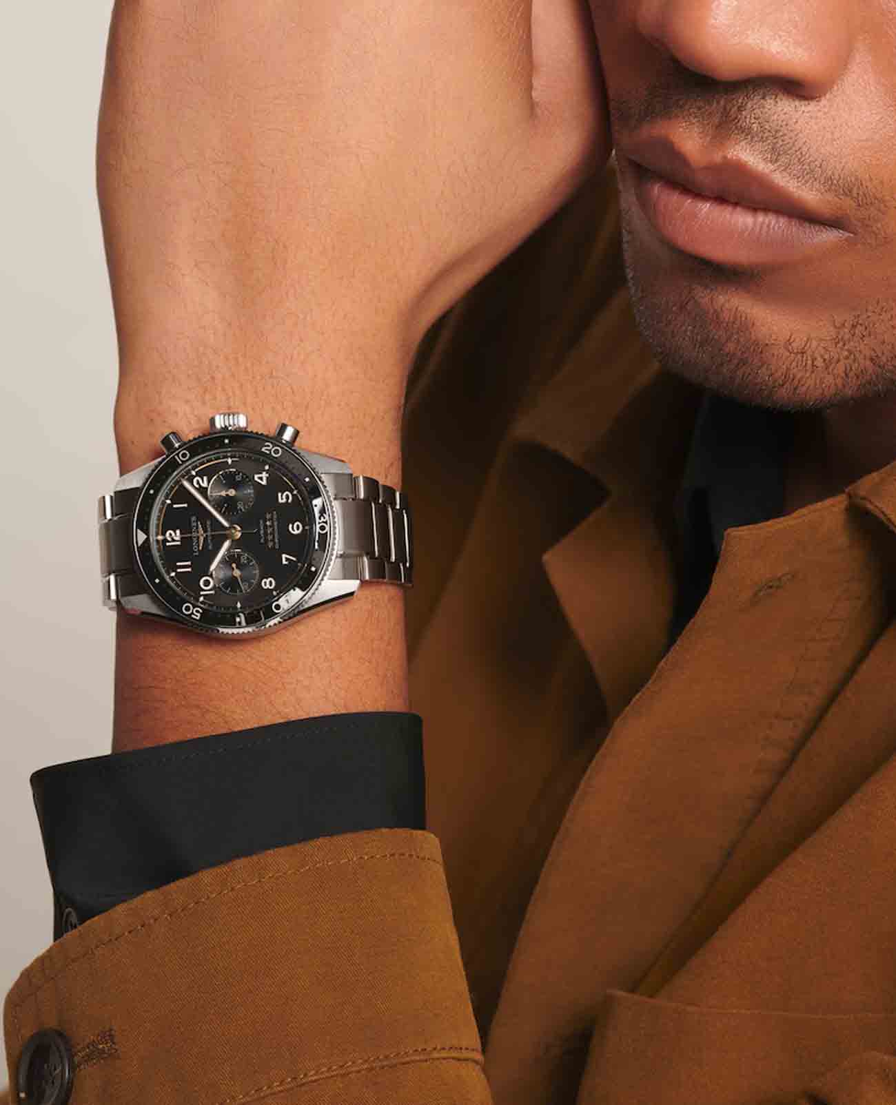 Мужские швейцарские механические часы Longines Spirit Flyback L3.821.4.53.6 – высокоточный хронометр в стильном дизайне. Спортивный хронографХронографФункция позволяет измерять отрезки времени с особой точностью: часы, минуты, секунды. Верным признаком хронографа является наличие на циферблате 3 дополнительных окошек-счётчиков. выпущен в честь известных авиаторов, которые раньше тестировали часы Longines. Модель оснащена швейцарским автоматическим механизмом, чрезвычайно точный механизм с запасом хода 68 часов сертифицирован COSCСертификат COSCОфициальный сертификат, подтверждающий то, что часы ходят с особо высокой точностью. Для получения документа часы подвергаются тестовым испытаниям, разработанным швейцарским институтом тестирования хронометров COSC. Допустимая норма для механических часов -4/+6 секунд в день, для кварцевых моделей +/- 0,07 секунд в день.. Дополнительные особенности: сапфировое стеклоСапфировое стеклоПрочный и надёжный материал из кристалла сапфира синтетического происхождения, характеризующийся особой твёрдостью и устойчивостью к царапинам и повреждениям. с двухсторонним антибликовым покрытиемАнтибликовое покрытиеСлой оксида металла в 0,13-0,3 микрон, благодаря которому стекло часов не бликует и не отражает свет. Антибликовое покрытие уменьшает отражение света в 10 раз, обеспечивая отличную читаемость показателей циферблата., люминесцентная подсветкаЛюминесцентное покрытиеПозволяет считывать показания времени в темноте. Производители наносят на стрелки, часовые индексы, безель или поверхность циферблата светонакопительный состав, дающий холодное свечение.. Часы, минуты, малая секундная стрелка в положении 9 часов. Он оснащен двунаправленным безелемБезельВнешний ободок, закрепляющий стекло. В спортивных часах так называется поворотное кольцо с делениями на циферблате, выполняет роль таймера – замеряет отрезки времени на шкале. Неподвижный безель – элемент декора. Однонаправленно вращающийся безель на дайверских часах позволяет фиксировать моменты погружения и выныривания на поверхность., дополненным керамической вставкой с люминесцентнымЛюминесцентное покрытиеПозволяет считывать показания времени в темноте. Производители наносят на стрелки, часовые индексы, безель или поверхность циферблата светонакопительный состав, дающий холодное свечение. метками и циферблатом в виде солнечных лучей. Класс водозащиты: 100 метров, позволит плавать, нырять и заниматься другими водными видами спорта. Стальной браслет на раскладной застёжкеРаскладная застёжкаТакой тип застёжки используется только на браслетах из металла. Она никогда не раскрывается полностью, происходит разделение на 2 и более частей. Раскладывающая застёжка снизит вероятность потери часов к минимуму.