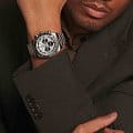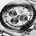Мужские швейцарские механические часы- хронографХронографФункция позволяет измерять отрезки времени с особой точностью: часы, минуты, секунды. Верным признаком хронографа является наличие на циферблате 3 дополнительных окошек-счётчиков. Longines Conquest L3.835.4.72.6. Сапфировое стеклоСапфировое стеклоПрочный и надёжный материал из кристалла сапфира синтетического происхождения, характеризующийся особой твёрдостью и устойчивостью к царапинам и повреждениям. с многослойным антибликовым покрытием с обеих сторон, устойчивое к появлению царапин, обладающее высокой прозрачностью. Корпус часов изготовлен из стали. Неподвижный безельБезельВнешний ободок, закрепляющий стекло. В спортивных часах так называется поворотное кольцо с делениями на циферблате, выполняет роль таймера – замеряет отрезки времени на шкале. Неподвижный безель – элемент декора. Однонаправленно вращающийся безель на дайверских часах позволяет фиксировать моменты погружения и выныривания на поверхность. из стали и керамики, защищенный от царапин, никогда не изнашивается и не выцветает. Шкала тахиметраТахиметрРазмеченная шкала, располагается на ободке или безеле часов. Тахиметр позволяет рассчитать скорость на определённом участке пути, расстояние измеряется в километрах или милях.. На циферблате расположены три дополнительных циферблата. Стрелки и метки с люминесцентным покрытиемЛюминесцентное покрытиеПозволяет считывать показания времени в темноте. Производители наносят на стрелки, часовые индексы, безель или поверхность циферблата светонакопительный состав, дающий холодное свечение.. Класс водозащиты: 100 метров, позволит плавать, нырять и заниматься другими водными видами спорта. Стальной браслет на раскладной застёжкеРаскладная застёжкаТакой тип застёжки используется только на браслетах из металла. Она никогда не раскрывается полностью, происходит разделение на 2 и более частей. Раскладывающая застёжка снизит вероятность потери часов к минимуму..
