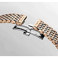 Стальной браслет с частичным PVD-покрытиемPVDУльтратонкое покрытие наносится в технике вакуумного напыления, сочетает в себе нитрид титана особой прочности со слоем золота или оксида хрома. Несёт в себе декоративную или защитную функцию. и застёжкой-бабочкой с кнопкамиЗастёжка "бабочка"Такой вид застёжки дополняется предохранителями, помогающими избежать случайного раскрытия браслета. Обладают изящным исполнением. обеспечивает удобство и уверенность при ношении, дополняя образ своей утончённостью и стилем.