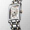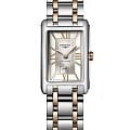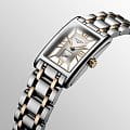 Женские швейцарские часы Longines DolceVita L5.255.5.75.7, кварцевый механизм с высокой точностью. Сапфировое стеклоСапфировое стеклоПрочный и надёжный материал из кристалла сапфира синтетического происхождения, характеризующийся особой твёрдостью и устойчивостью к царапинам и повреждениям. устойчивое к появлению царапин, обладающее высокой прозрачностью. Корпус часов изготовлен из нержавеющей стали. Циферблат украшен римскими цифрами. Малая секундная стрелка в положении 6 часов. Класс водозащиты: 30 метров, позволит защитить корпус от случайных брызг или капель дождя. Браслет из нержавеющей стали и 18-каратного золота18-каратное золотоОбозначение по каратной системе пробирования, оно показывает, сколько драгоценного металла содержится в изделии. 18 карат - в составе 75% чистого золота, соответствует 750 пробе.