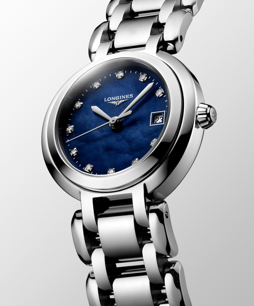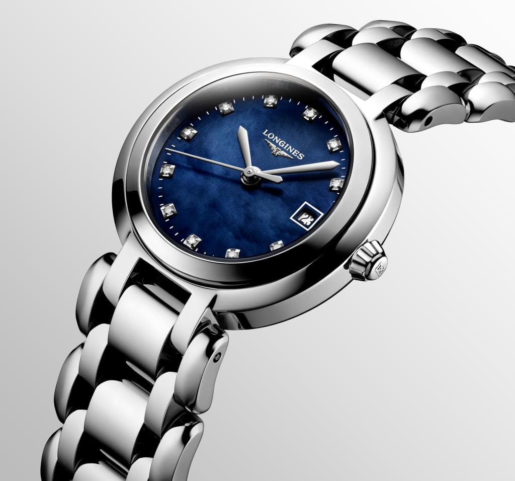 Женские швейцарские механические часы с автоподзаводом Longines PrimaLuna L8.120.4.98.6. Исключительно женственная коллекция. Округлые, нежные линии Longines Prima Luna - дань преклонения перед женственной Луной, символом переменчивости времени. Сапфировое стеклоСапфировое стеклоПрочный и надёжный материал из кристалла сапфира синтетического происхождения, характеризующийся особой твёрдостью и устойчивостью к царапинам и повреждениям. устойчивое к появлению царапин, обладающее высокой прозрачностью. Корпус часов изготовлен из нержавеющей стали. Изысканная чистота циферблата подчеркивает ее мягкий силуэт, обрамленный сиянием бриллиантов. Окошко даты в положении 3 часов. Класс водозащиты: 30 метров, позволит защитить корпус от случайных брызг или капель дождя. Стальной браслет на застёжке-бабочке с кнопкамиЗастёжка "бабочка"Такой вид застёжки дополняется предохранителями, помогающими избежать случайного раскрытия браслета. Обладают изящным исполнением. .