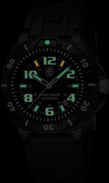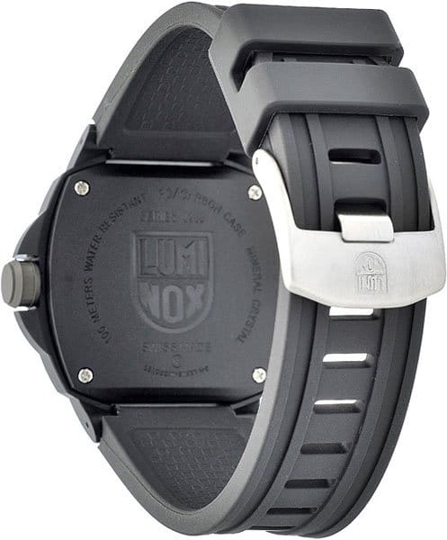 Эффектные швейцарские наручные часы. 12-ти и 24-х часовой формат времени. Безель вращается в одном направлении. Задняя крышка из усиленного карбона закреплена стальными винтами. Заводная головка с защитой выполнена из стали. Материал корпуса: пластик, усиленный прессованный карбон; Материал браслета: полиуретановый; Стекло: Минеральное; Водозащита: 100 м. (WR 100).