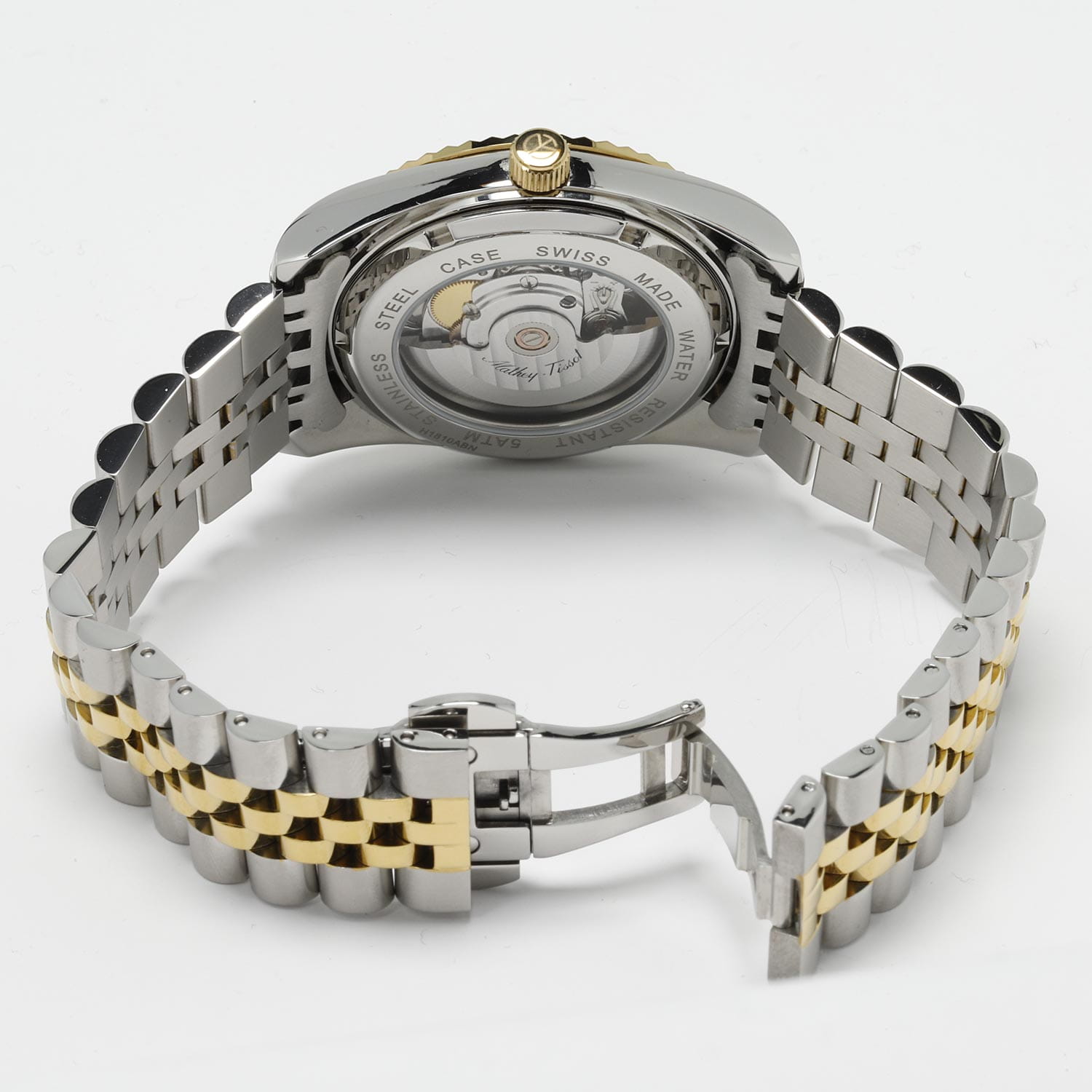 Мужские механические часы с автоподзаводом Mathey-Tissot Mathy H1810ATBI — это стильное сочетание элегантности и современного дизайна. Изящный корпус выполнен из нержавеющей стали, диаметром 42 мм, что придаст образу элегантности и надежности. Изысканный циферблат с метками в виде штрихов придает модели особый блеск. Циферблат защищен минеральным стекломМинеральное стеклоМинеральное стекло представляет собой искусственно выращенный минерал кварца. Такое стекло отличается особой устойчивостью к повреждениям и царапинам. Уступает по некоторым качествам сапфировому стеклу. с сапфировым покрытием, обеспечивает устойчивость к царапинам. БезельБезельВнешний ободок, закрепляющий стекло. В спортивных часах так называется поворотное кольцо с делениями на циферблате, выполняет роль таймера – замеряет отрезки времени на шкале. Неподвижный безель – элемент декора. Однонаправленно вращающийся безель на дайверских часах позволяет фиксировать моменты погружения и выныривания на поверхность. с PVD-покрытиемPVDУльтратонкое покрытие наносится в технике вакуумного напыления, сочетает в себе нитрид титана особой прочности со слоем золота или оксида хрома. Несёт в себе декоративную или защитную функцию. золотистого цвета. Стрелки с люминесцентным покрытиемЛюминесцентное покрытиеПозволяет считывать показания времени в темноте. Производители наносят на стрелки, часовые индексы, безель или поверхность циферблата светонакопительный состав, дающий холодное свечение.. Окошко даты находится в положении 3 часа. Стальной браслет с частичным PVD-покрытиемPVDУльтратонкое покрытие наносится в технике вакуумного напыления, сочетает в себе нитрид титана особой прочности со слоем золота или оксида хрома. Несёт в себе декоративную или защитную функцию. на застёжке-бабочке с кнопкамиЗастёжка "бабочка"Такой вид застёжки дополняется предохранителями, помогающими избежать случайного раскрытия браслета. Обладают изящным исполнением. , гарантирует комфортное и безопасное ношение. Рифленая заводная головка. Класс водозащиты: 50 метров позволит защитить корпус от случайных брызг или капель дождя. Mathey-Tissot — отличный выбор для тех, кто ценит утонченность и качество.