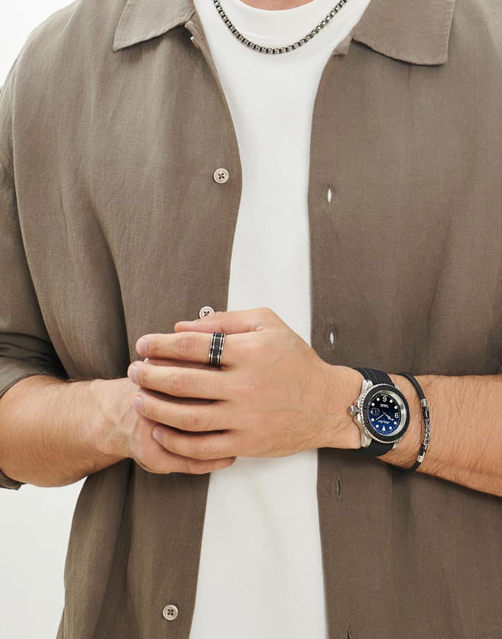Мужские кварцевые часы Mathey-Tissot Mathy H909ABU— это стильное сочетание элегантности и современного дизайна. Изящный корпус выполнен из нержавеющей стали, диаметром 42 мм, что придаст образу элегантности и надежности. Циферблат с метками в виде точек и арабских цифр придает модели особый блеск. Циферблат защищен минеральным стекломМинеральное стеклоМинеральное стекло представляет собой искусственно выращенный минерал кварца. Такое стекло отличается особой устойчивостью к повреждениям и царапинам. Уступает по некоторым качествам сапфировому стеклу. с сапфировым покрытием, обеспечивает устойчивость к царапинам. Стрелки и метки с люминесцентным покрытиемЛюминесцентное покрытиеПозволяет считывать показания времени в темноте. Производители наносят на стрелки, часовые индексы, безель или поверхность циферблата светонакопительный состав, дающий холодное свечение.. Окошко даты находится в положении 3 часа. Вращающийся безельБезельВнешний ободок, закрепляющий стекло. В спортивных часах так называется поворотное кольцо с делениями на циферблате, выполняет роль таймера – замеряет отрезки времени на шкале. Неподвижный безель – элемент декора. Однонаправленно вращающийся безель на дайверских часах позволяет фиксировать моменты погружения и выныривания на поверхность. в одном направлении. Часы оснащены надежным кварцевым механизмом. Силиконовый ремешок с раскладной застёжкойРаскладная застёжкаТакой тип застёжки используется только на браслетах из металла. Она никогда не раскрывается полностью, происходит разделение на 2 и более частей. Раскладывающая застёжка снизит вероятность потери часов к минимуму. гарантирует комфортное и безопасное ношение. Класс водозащиты: 200 метров позволит плавать, нырять и заниматься другими водными видами спорта. Mathey-Tissot — отличный выбор для тех, кто ценит утонченность и качество.