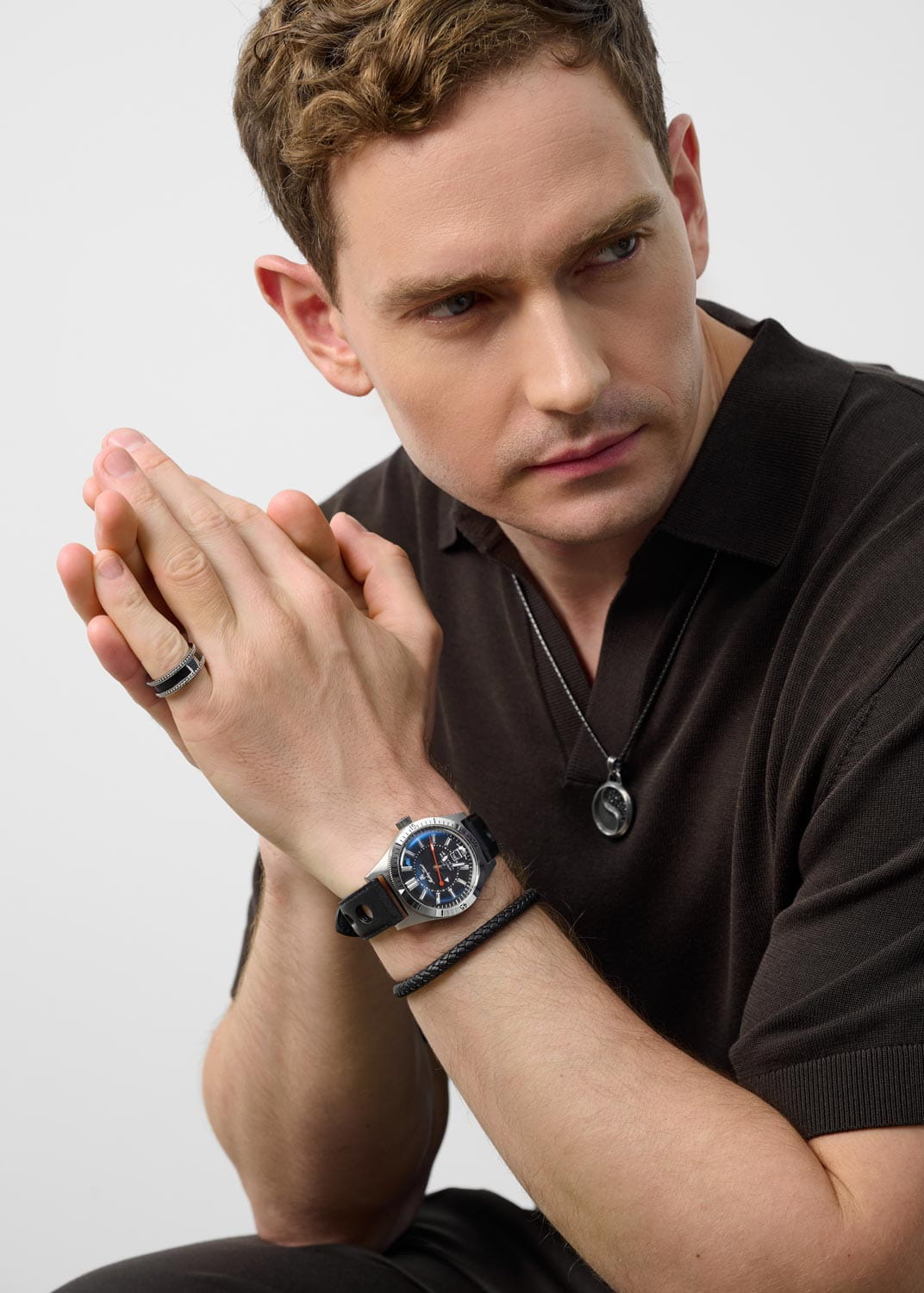 Мужские кварцевые часы Mathey-Tissot Mergulhador GMTGMTОтображение времени второго часового пояса.Такая функция особенно актуальна для путешественников и бизнесменов,которые общаются с людьми из разных стран,теперь вы всегда будете знать,какой час у вашего партнёра или близкого человека. MRGAN — это стильное сочетание элегантности и современного дизайна. Изящный корпус выполнен из нержавеющей стали, диаметром 41 мм, что придаст образу элегантности и надежности. Циферблат с метками в виде штрихов придает модели особый блеск. Циферблат защищен минеральным стекломМинеральное стеклоМинеральное стекло представляет собой искусственно выращенный минерал кварца. Такое стекло отличается особой устойчивостью к повреждениям и царапинам. Уступает по некоторым качествам сапфировому стеклу. с сапфировым покрытием, обеспечивает устойчивость к царапинам. Второй часовой поясВторой часовой поясФункция, позволяющая отображать время двух часовых поясов одновременно. в 24-х часовом формате времени отображается центральной стрелкой. Стрелки и метки с люминесцентным покрытиемЛюминесцентное покрытиеПозволяет считывать показания времени в темноте. Производители наносят на стрелки, часовые индексы, безель или поверхность циферблата светонакопительный состав, дающий холодное свечение. SuperLumiNova, которое светится в темноте после непродолжительной зарядки на свету. Окошко даты находится в положении 6 часов. Рифленый безельБезельВнешний ободок, закрепляющий стекло. В спортивных часах так называется поворотное кольцо с делениями на циферблате, выполняет роль таймера – замеряет отрезки времени на шкале. Неподвижный безель – элемент декора. Однонаправленно вращающийся безель на дайверских часах позволяет фиксировать моменты погружения и выныривания на поверхность. с минутными отметками вращается в одном направлении. Часы оснащены надежным кварцевым механизмом. Кожаный ремешок на стандартной застёжке гарантирует комфортное и безопасное ношение. Класс водозащиты: 200 метров позволит плавать, нырять и заниматься другими водными видами спорта. Mathey-Tissot — отличный выбор для тех, кто ценит утонченность и качество.