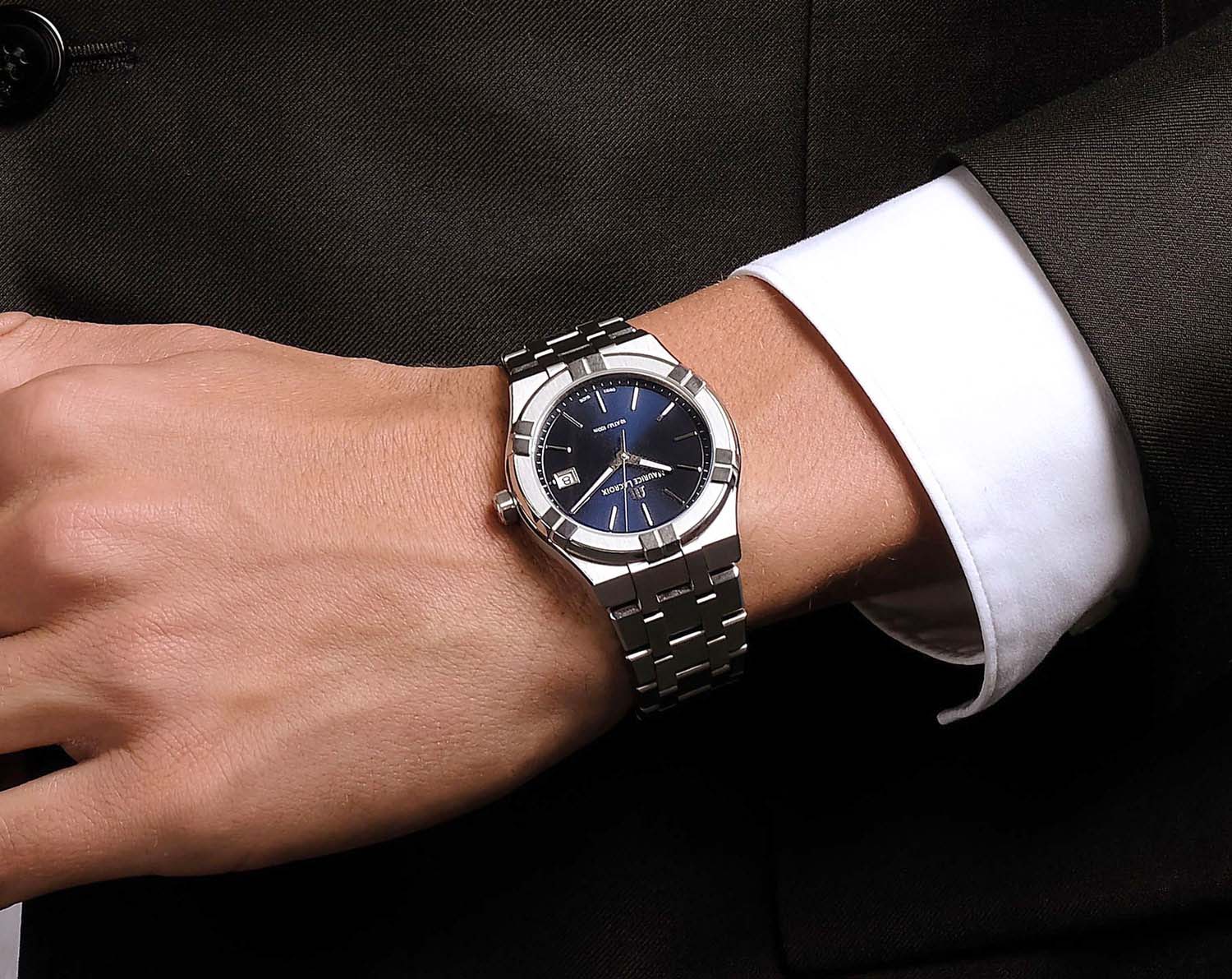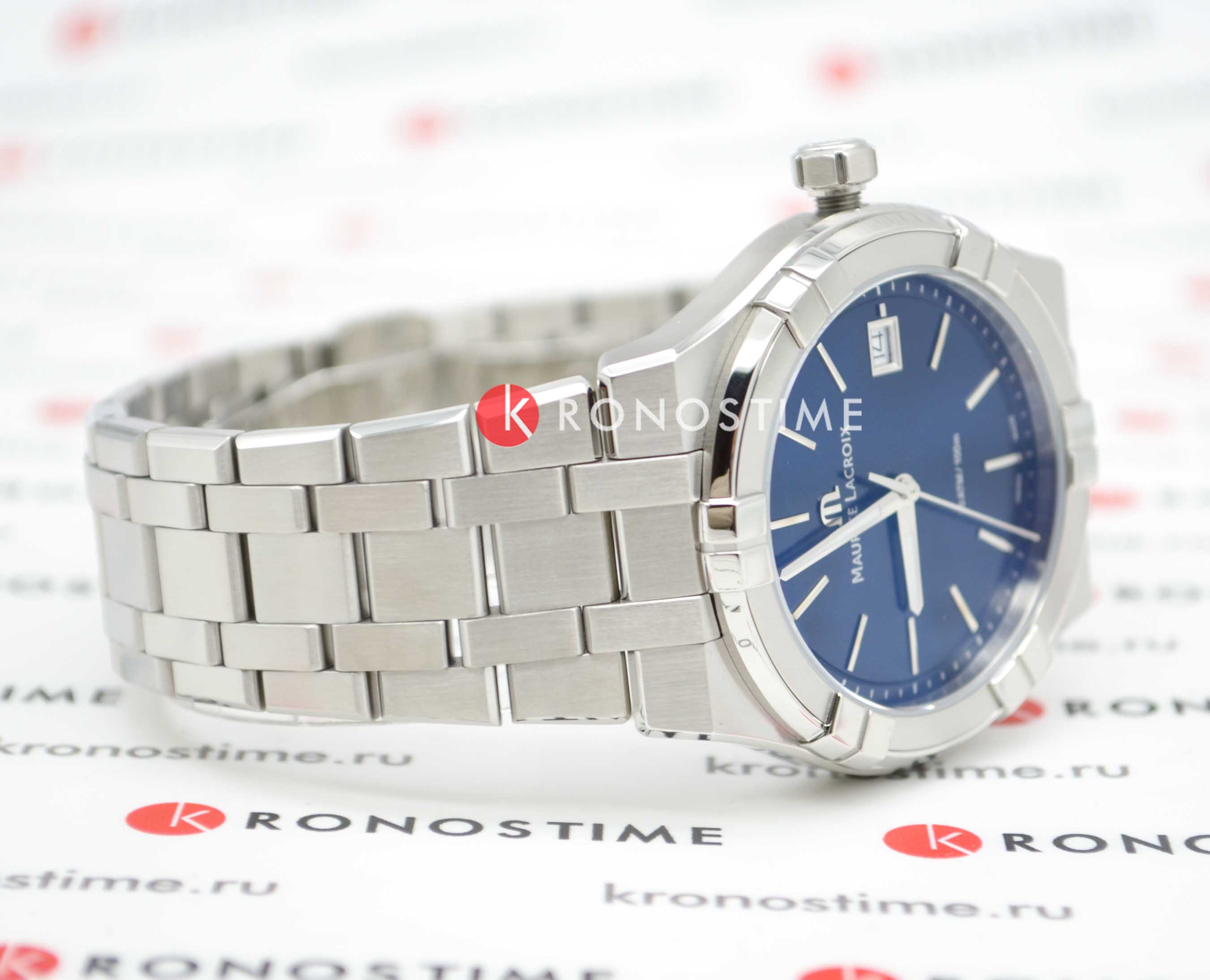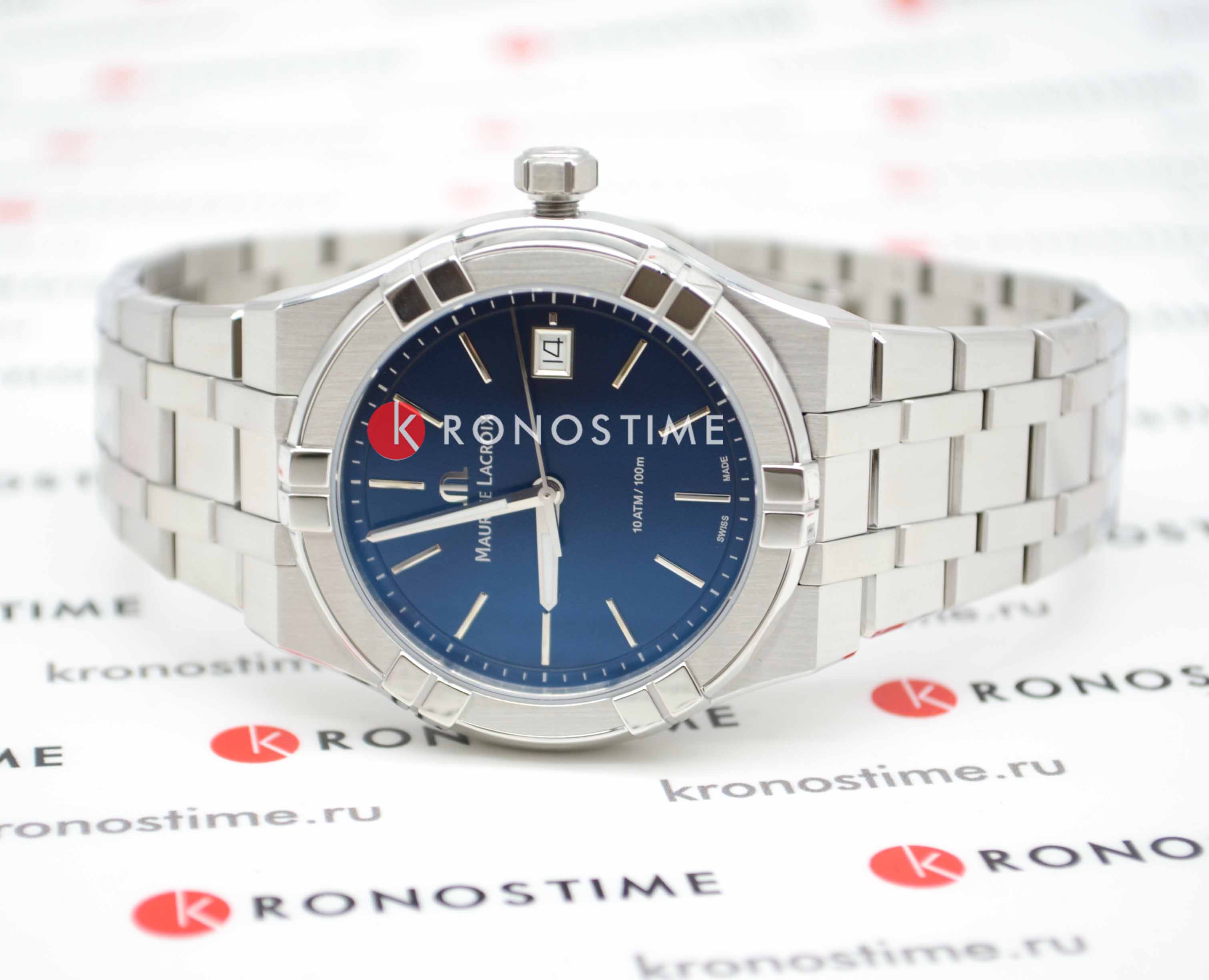 Мужские швейцарские кварцевые часы Maurice Lacroix Aikon Quartz AI1108-SS002-430-1. Сапфировое стеклоСапфировое стеклоПрочный и надёжный материал из кристалла сапфира синтетического происхождения, характеризующийся особой твёрдостью и устойчивостью к царапинам и повреждениям. устойчивое к появлению царапин, обладающее высокой прозрачностью. Синий циферблат. Стрелки с люминесцентным покрытиемЛюминесцентное покрытиеПозволяет считывать показания времени в темноте. Производители наносят на стрелки, часовые индексы, безель или поверхность циферблата светонакопительный состав, дающий холодное свечение.. Класс водозащиты: 100 метров, позволит плавать, нырять и заниматься другими водными видами спорта. Окошко даты находится в положении 3 часов. Корпус и браслет часов изготовлены из стали. Браслет с застёжкой «бабочка» с кнопкамиЗастёжка "бабочка"Такой вид застёжки дополняется предохранителями, помогающими избежать случайного раскрытия браслета. Обладают изящным исполнением. .