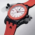 Мужские швейцарские кварцевые часы Maurice Lacroix Aikon #Tide Black, Red and White AI2008-04010-400-J. Сапфировое стеклоСапфировое стеклоПрочный и надёжный материал из кристалла сапфира синтетического происхождения, характеризующийся особой твёрдостью и устойчивостью к царапинам и повреждениям. устойчивое к появлению царапин, обладающее высокой прозрачностью. Корпус часов изготовлен из переработанного пластика. Стрелки и метки с люминесцентным покрытиемЛюминесцентное покрытиеПозволяет считывать показания времени в темноте. Производители наносят на стрелки, часовые индексы, безель или поверхность циферблата светонакопительный состав, дающий холодное свечение.. Водозащита: 100 метров, позволит плавать, нырять и заниматься другими водными видами спорта. Каучуковый ремешок.