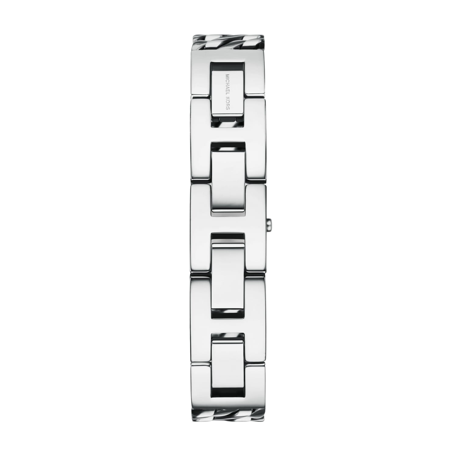 Женские американские часы Michael Kors DARRINGTON MK4909 имеют кварцевый механизм с высокой точностью. Корпус часов изготовлен из нержавеющей стали серебристого цвета, размером 14 мм. Циферблат защищен минеральным стекломМинеральное стеклоМинеральное стекло представляет собой искусственно выращенный минерал кварца. Такое стекло отличается особой устойчивостью к повреждениям и царапинам. Уступает по некоторым качествам сапфировому стеклу., что обеспечивает надежную защиту от царапин и повреждений. Класс водозащиты: 50 метров позволит защитить корпус от случайных брызг или капель дождя. Стальной браслет на ювелирной застёжкеРаскладная застёжкаТакой тип застёжки используется только на браслетах из металла. Она никогда не раскрывается полностью, происходит разделение на 2 и более частей. Раскладывающая застёжка снизит вероятность потери часов к минимуму. обеспечивает надежную фиксацию на запястье и легкость в надевании и снятии. Эти часы станут отличным дополнением к любому наряду, подчеркивая индивидуальность и стиль их обладательницы. Идеальный аксессуар, который придаст женскому образу завершенность и особый шарм.