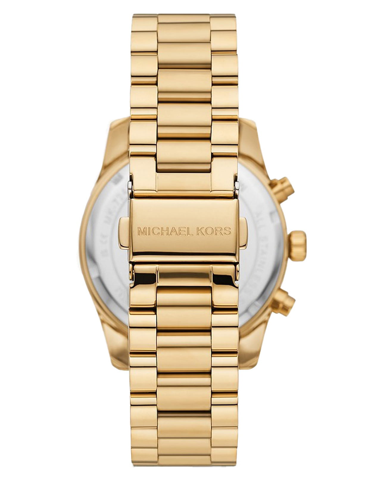 Женские американские часы-хронографХронографФункция позволяет измерять отрезки времени с особой точностью: часы, минуты, секунды. Верным признаком хронографа является наличие на циферблате 3 дополнительных окошек-счётчиков. с секундомеромСекундомерСекундоме́р — прибор, способный измерять интервалы времени с точностью до долей секунды. и с минеральным стекломМинеральное стеклоМинеральное стекло представляет собой искусственно выращенный минерал кварца. Такое стекло отличается особой устойчивостью к повреждениям и царапинам. Уступает по некоторым качествам сапфировому стеклу. Michael Kors Lexington MK7241, кварцевый механизм с высокой точностью. Корпус часов изготовлен из нержавеющей стали с PVD-покрытиемPVDУльтратонкое покрытие наносится в технике вакуумного напыления, сочетает в себе нитрид титана особой прочности со слоем золота или оксида хрома. Несёт в себе декоративную или защитную функцию.. БезельБезельВнешний ободок, закрепляющий стекло. В спортивных часах так называется поворотное кольцо с делениями на циферблате, выполняет роль таймера – замеряет отрезки времени на шкале. Неподвижный безель – элемент декора. Однонаправленно вращающийся безель на дайверских часах позволяет фиксировать моменты погружения и выныривания на поверхность. украшен кристаллами. Три дополнительных индикатора. Метки в виде штрихов и римских цифр. Окошко даты находится в положении 6 часов. Класс водозащиты: 100 метров, позволит плавать, нырять и заниматься другими водными видами спорта. Стальной браслет с PVD-покрытиемPVDУльтратонкое покрытие наносится в технике вакуумного напыления, сочетает в себе нитрид титана особой прочности со слоем золота или оксида хрома. Несёт в себе декоративную или защитную функцию. на раскладной застёжкеРаскладная застёжкаТакой тип застёжки используется только на браслетах из металла. Она никогда не раскрывается полностью, происходит разделение на 2 и более частей. Раскладывающая застёжка снизит вероятность потери часов к минимуму..