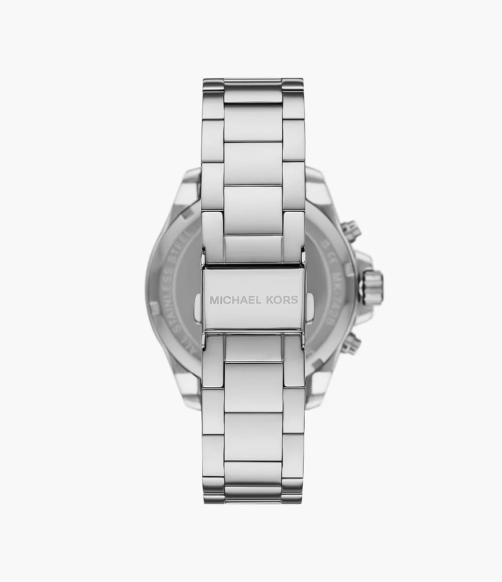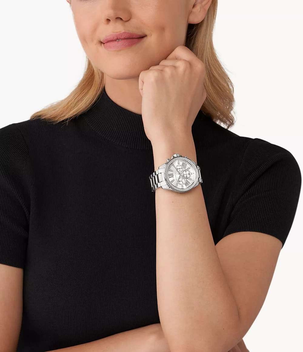 Откройте для себя сочетание современного стиля и функциональности в часах Michael Kors WREN MK7429 — потрясающие серебряные часы-хронографХронографФункция позволяет измерять отрезки времени с особой точностью: часы, минуты, секунды. Верным признаком хронографа является наличие на циферблате 3 дополнительных окошек-счётчиков. с секундомеромСекундомерСекундоме́р — прибор, способный измерять интервалы времени с точностью до долей секунды., созданных для женщин, которые ценят изысканность и утонченность. Эти часы легко дополнят любой образ и станут идеальным аксессуаром как для повседневного, так и для официального мероприятия. Кварцевый механизм с высокой точностью. Корпус часов изготовлен из нержавеющей стали, диаметром 42 мм. Циферблат с метками в виде римских цифр защищен минеральным стекломМинеральное стеклоМинеральное стекло представляет собой искусственно выращенный минерал кварца. Такое стекло отличается особой устойчивостью к повреждениям и царапинам. Уступает по некоторым качествам сапфировому стеклу., что обеспечивает надежную защиту от царапин и повреждений. Класс водозащиты: 100 метров позволит плавать, нырять и заниматься другими водными видами спорта. Метки с люминесцентным покрытиемЛюминесцентное покрытиеПозволяет считывать показания времени в темноте. Производители наносят на стрелки, часовые индексы, безель или поверхность циферблата светонакопительный состав, дающий холодное свечение.. Удобный стальной браслет на раскладной застёжкеРаскладная застёжкаТакой тип застёжки используется только на браслетах из металла. Она никогда не раскрывается полностью, происходит разделение на 2 и более частей. Раскладывающая застёжка снизит вероятность потери часов к минимуму. обеспечивает надежную фиксацию на запястье и легкость в надевании и снятии. БезельБезельВнешний ободок, закрепляющий стекло. В спортивных часах так называется поворотное кольцо с делениями на циферблате, выполняет роль таймера – замеряет отрезки времени на шкале. Неподвижный безель – элемент декора. Однонаправленно вращающийся безель на дайверских часах позволяет фиксировать моменты погружения и выныривания на поверхность. инкрустирован кристаллами. 24-часовой формат времени для удобства планирования. Рифленая заводная головка.