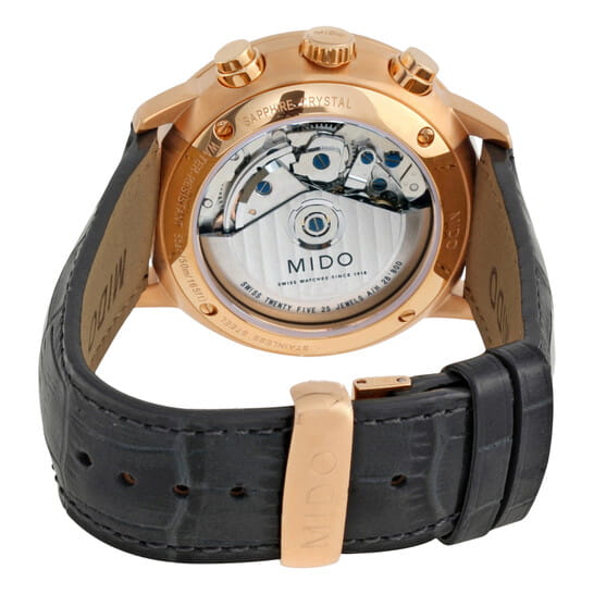 Мужские швейцарские механические часы с сапфировым стеклом Mido Commander Chronograph M016.414.36.031.59, механический механизм (автоматический калибр) с высокой точностью. Сапфировое стекло устойчивое к появлению царапин, обладающее высокой прозрачностью. Класс водозащиты: 50 метров, позволит защитить корпус от случайных брызг или капель дождя. Корпус часов изготовлен из стали.