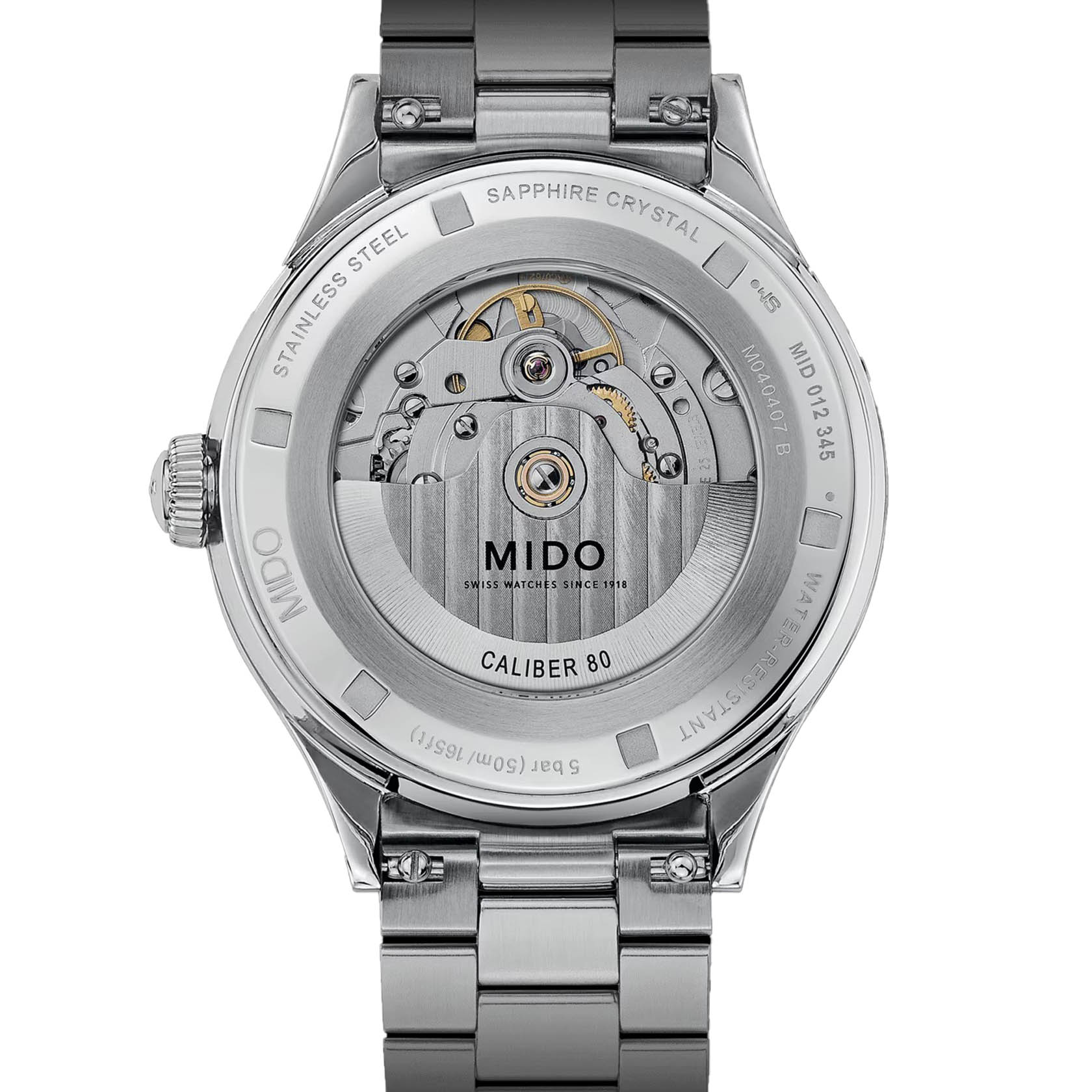 Модель оснащена автоматическим механизмом MIDO Caliber 80 (на базе ETA C07.621), обеспечивающим запас хода до 80 часов.