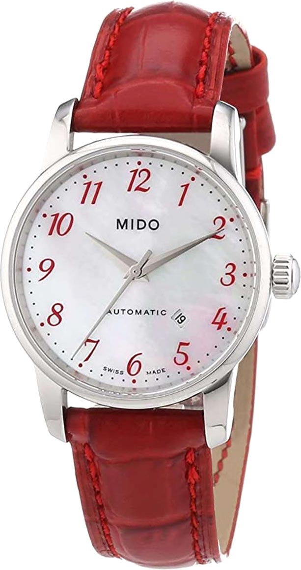 Женские швейцарские механические часы Mido Baroncelli Sz Lr A steel Lea.r M7600.4.39.7, автоматический механизм с высокой точностью. Сапфировое стеклоСапфировое стеклоПрочный и надёжный материал из кристалла сапфира синтетического происхождения, характеризующийся особой твёрдостью и устойчивостью к царапинам и повреждениям. устойчивое к появлению царапин, обладающее высокой прозрачностью. Класс водозащиты: 50 метров, позволит защитить корпус от случайных брызг или капель дождя. Корпус часов изготовлен из нержавеющей стали.