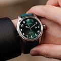 Мужские механические часы с автоподзаводом — это надёжный аксессуар от легендарного бренда «МОЛНИЯ», созданного на Челябинском часовом заводе. Корпус диаметром 44 мм и высотой 12 мм выполнен из нержавеющей стали 316L с матовой полировкой. БезельБезельВнешний ободок, закрепляющий стекло. В спортивных часах так называется поворотное кольцо с делениями на циферблате, выполняет роль таймера – замеряет отрезки времени на шкале. Неподвижный безель – элемент декора. Однонаправленно вращающийся безель на дайверских часах позволяет фиксировать моменты погружения и выныривания на поверхность. также выполнен из стали с матовой отделкой. Циферблат зелёного цвета матовый, оформлен стрелками и индексами с люминесцентным покрытиемЛюминесцентное покрытиеПозволяет считывать показания времени в темноте. Производители наносят на стрелки, часовые индексы, безель или поверхность циферблата светонакопительный состав, дающий холодное свечение. Super-LumiNova. Окошко даты расположено в положении 3 часов. Циферблат защищён сапфировым стекломСапфировое стеклоПрочный и надёжный материал из кристалла сапфира синтетического происхождения, характеризующийся особой твёрдостью и устойчивостью к царапинам и повреждениям. толщиной 1,5 мм. Механизм — японский автоматический калибр Miyota 8215 с функцией и запасом хода 42 часа. Часы оснащены кожаным ремешком зелёного цвета шириной 22 мм с классической пряжкой. Водонепроницаемость 100 м позволяет использовать часы для плавания и повседневного ношения. Идеальный выбор для тех, кто ценит российское качество и мужественный дизайн.