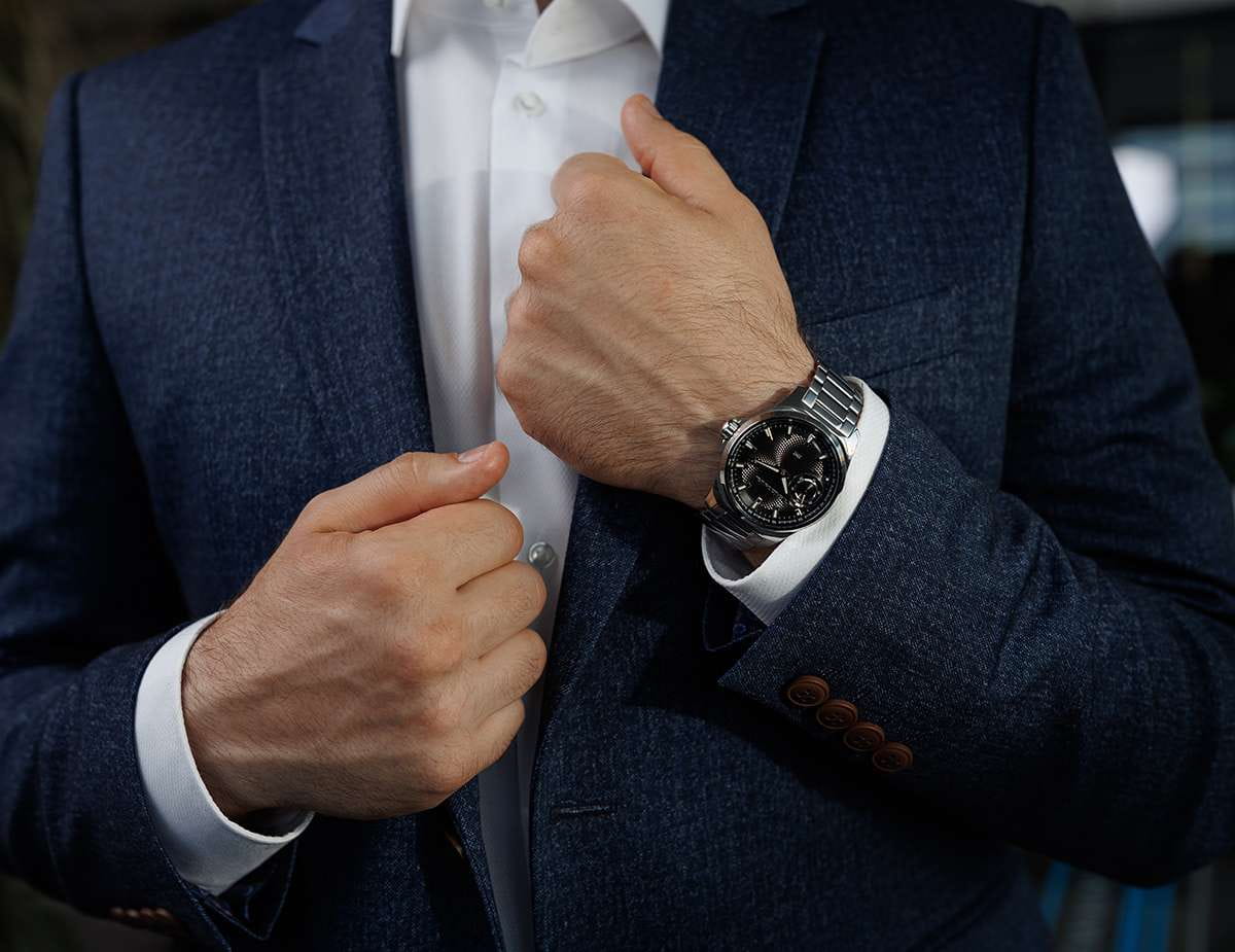 Мужские механические часы с ручным подзаводом — это аксессуар от легендарного бренда «МОЛНИЯ», созданный на Челябинском часовом заводе. Корпус диаметром 42 мм выполнен из нержавеющей стали 316L с зеркальной полировкой. БезельБезельВнешний ободок, закрепляющий стекло. В спортивных часах так называется поворотное кольцо с делениями на циферблате, выполняет роль таймера – замеряет отрезки времени на шкале. Неподвижный безель – элемент декора. Однонаправленно вращающийся безель на дайверских часах позволяет фиксировать моменты погружения и выныривания на поверхность. также выполнен из стали с зеркальной отделкой. Циферблат чёрного цвета оформлен индексами и стрелками. Малая секундная стрелка вынесена на позицию 9 часов. Стрелки и метки с люминесцентным покрытиемЛюминесцентное покрытиеПозволяет считывать показания времени в темноте. Производители наносят на стрелки, часовые индексы, безель или поверхность циферблата светонакопительный состав, дающий холодное свечение. Super-LumiNova, обеспечивающим хорошую читаемость в темноте. Циферблат защищён сапфировым стекломСапфировое стеклоПрочный и надёжный материал из кристалла сапфира синтетического происхождения, характеризующийся особой твёрдостью и устойчивостью к царапинам и повреждениям. с антибликовым покрытиемАнтибликовое покрытиеСлой оксида металла в 0,13-0,3 микрон, благодаря которому стекло часов не бликует и не отражает свет. Антибликовое покрытие уменьшает отражение света в 10 раз, обеспечивая отличную читаемость показателей циферблата.. Механизм — мануфактурный калибр 3603, собранный вручную, с запасом хода до 40 часов. Прозрачная задняя крышка позволяет наблюдать за работой механизма. Часы оснащены силиконовым ремешком чёрного цвета с классической пряжкой, а также системой быстрой замены. Водонепроницаемость 100 м позволяет использовать часы для плавания и повседневного ношения. Идеальный выбор для тех, кто ценит российское качество и традиции.