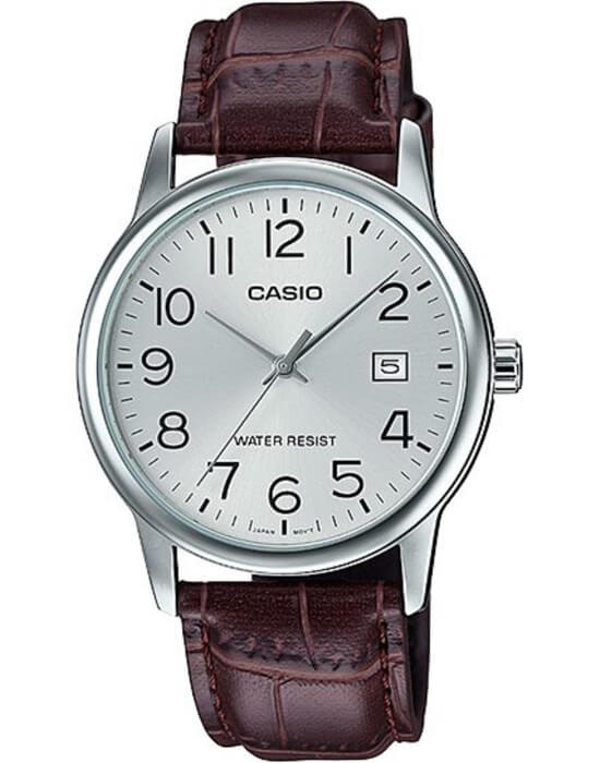 Casio MTP-V002L-7B2 – мужские классические стильные часы от всемирно известного японского бренда, который успел зарекомендовать себя как отличный производитель часов на мировом рынке Механизм в часах кварцевый, работающий от батарейки Водонепроницаемость этих часов 30 м (30WR) выдерживают лишь брызги воды Стекло минеральное Корпус из высококачественного стального сплава 316L с высокими антикоррозийными свойствами Время отображается при помощи стрелок, в формате 12 часов Отображение даты Ремешок сделан из мягкой, эластичной кожи