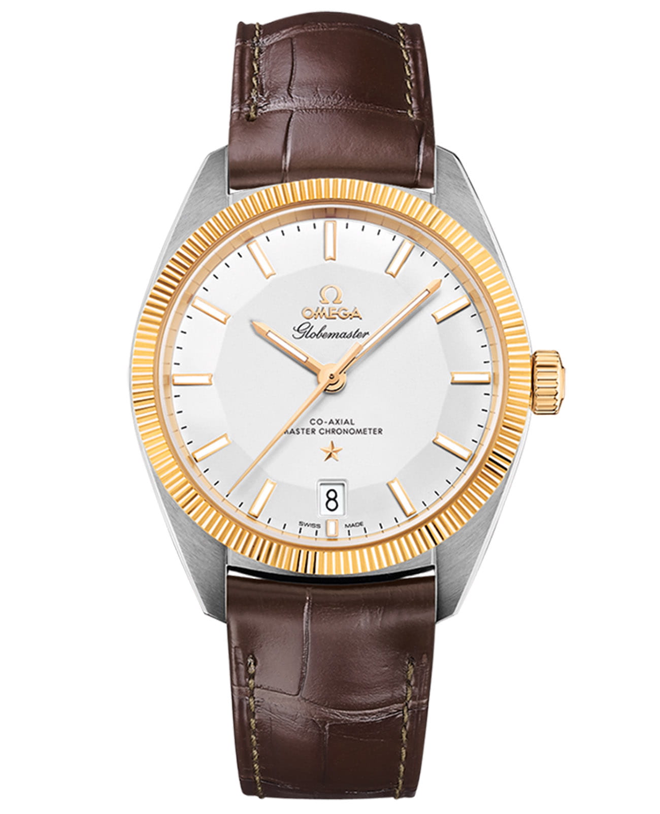 Часы Globemaster – воплощение часового совершенства OMEGA, где традиции встречаются с передовыми технологиями. Как первый в мире обладатель звания мастер-хронометра, они воплощают идеал часового искусства. Эти часы покоряют не только безупречной точностью, но и благородной простотой форм. Корпус из нержавеющей стали гармонирует с выразительным рифленым безелемБезельВнешний ободок, закрепляющий стекло. В спортивных часах так называется поворотное кольцо с делениями на циферблате, выполняет роль таймера – замеряет отрезки времени на шкале. Неподвижный безель – элемент декора. Однонаправленно вращающийся безель на дайверских часах позволяет фиксировать моменты погружения и выныривания на поверхность. из 18-каратного желтого золота18-каратное золотоОбозначение по каратной системе пробирования, оно показывает, сколько драгоценного металла содержится в изделии. 18 карат - в составе 75% чистого золота, соответствует 750 пробе.