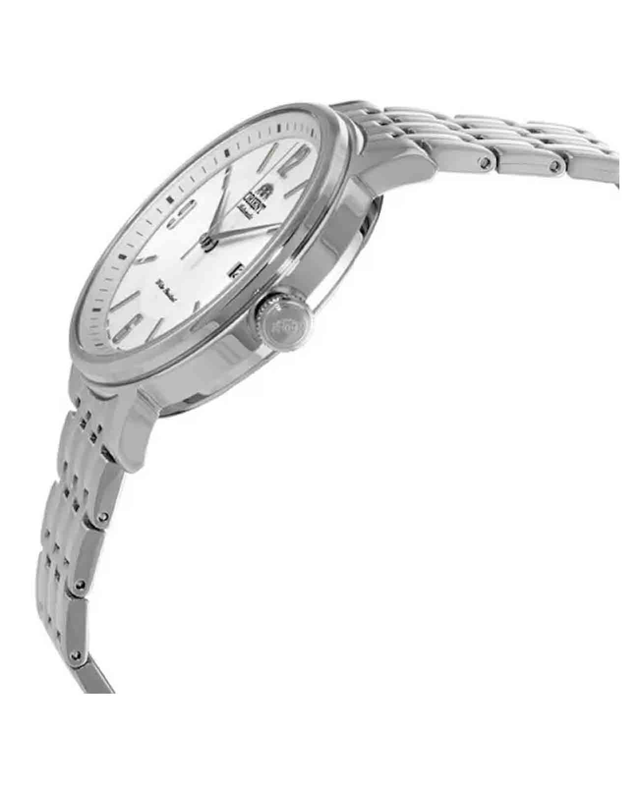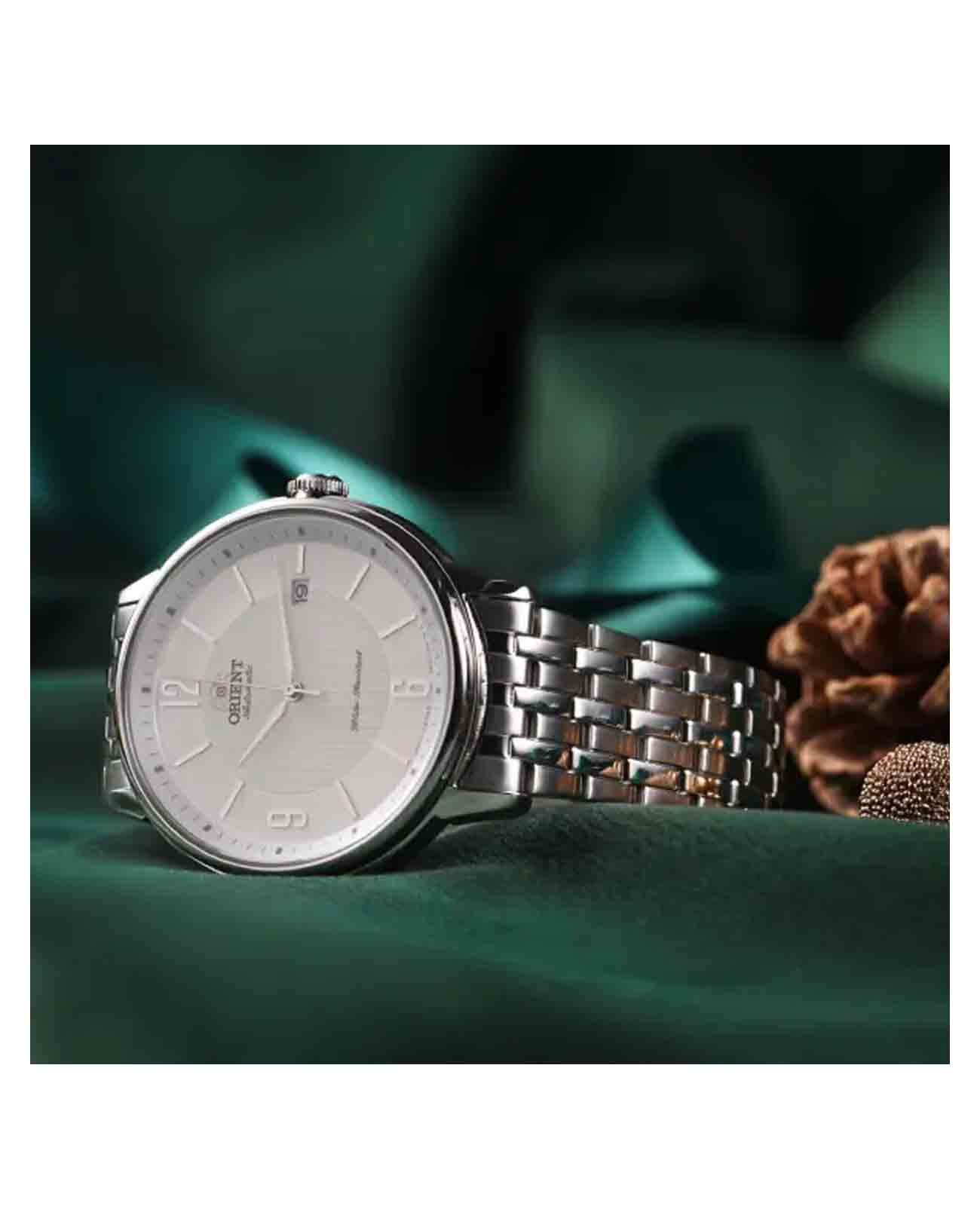 Мужские механические часы Orient Contemporary RA-AC0J10S с автоподзаводом олицетворяют собой сочетание современного дизайна и высоких технических стандартов. Циферблат защищен прочным сапфировым стекломСапфировое стеклоПрочный и надёжный материал из кристалла сапфира синтетического происхождения, характеризующийся особой твёрдостью и устойчивостью к царапинам и повреждениям., которое отличается устойчивостью к царапинам и долговечностью. Корпус и браслет часов выполнены из нержавеющей стали, что обеспечивает их прочность и долговечность. На позиции «3 часа» расположено окошко даты, что позволяет быстро узнать текущую дату. Внутри механизма находится 22 камня, а частота колебаний составляет 21 600 полуколебаний в час, что гарантирует высокую точность и стабильность работы часов. Запас хода достигает 40 часов, что позволяет часам долгое время сохранять работоспособность без дополнительного подзавода. Одной из особенностей данной модели является функция stop-second, которая останавливает секундную стрелку при заводе часов, что помогает точнее установить текущее время. Класс водозащиты 50 метров обеспечит защиту от случайных брызг или капель дождя, хотя для плавания такие часы не рекомендованы. Браслет из нержавеющей стали закреплен на раскладной застёжкеРаскладная застёжкаТакой тип застёжки используется только на браслетах из металла. Она никогда не раскрывается полностью, происходит разделение на 2 и более частей. Раскладывающая застёжка снизит вероятность потери часов к минимуму., что обеспечивает комфорт и безопасность при ношении.