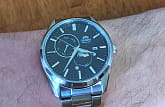 Часы Orient RA-AK0302B из коллекции Sun & Moon — это элегантное воплощение классики с функциональным дизайном. Корпус диаметром 41,5 мм выполнен из нержавеющей стали и защищён сапфировым стекломСапфировое стеклоПрочный и надёжный материал из кристалла сапфира синтетического происхождения, характеризующийся особой твёрдостью и устойчивостью к царапинам и повреждениям., которое обеспечивает устойчивость к царапинам. Чёрный циферблат дополнен золотистыми стрелками и , показывающим смену времени суток. Окошко даты расположено на отметке «3 часа», а отдельный индикатор отображает день недели, добавляя практичности. Автоматический механизм Orient Calibre F6B24 поддерживает ручной завод и функцию остановки секундной стрелки, обеспечивая точность хода. Запас хода до 40 часов позволяет использовать часы с комфортом в повседневной жизни. Браслет из нержавеющей стали с раскладной застёжкойРаскладная застёжкаТакой тип застёжки используется только на браслетах из металла. Она никогда не раскрывается полностью, происходит разделение на 2 и более частей. Раскладывающая застёжка снизит вероятность потери часов к минимуму. гарантирует надёжную фиксацию и удобство. Водонепроницаемость до 50 метров защищает модель от случайных брызг и дождя. Orient RA-AK0302B — это утончённое сочетание стиля, функциональности и японского качества для тех, кто ценит надёжность и элегантность.