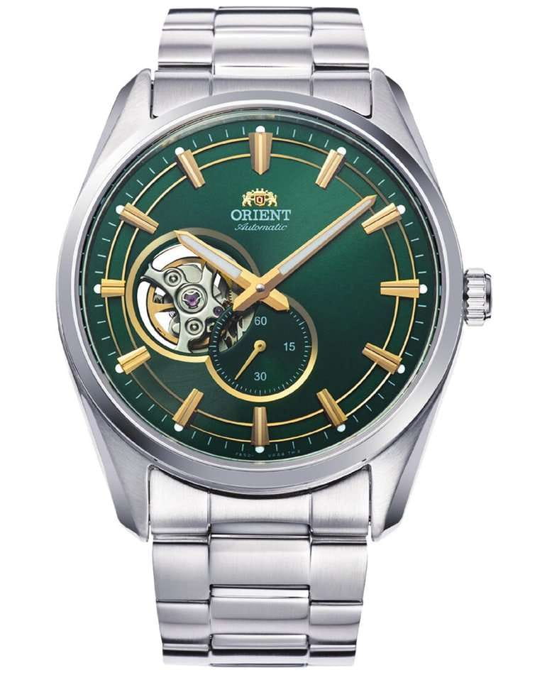 Часы Orient Automatic RA-AR0008E10B от японского часового бренда изготавливаются со строгим соблюдением всех норм качества, минималистичные модели в классическом стиле никогда не утратят своей актуальности. Эти часы оснащены механизмом с автоподзаводом на базе калибра F6S22. Запас хода не менее 40-ка часов. Количество камней - 24. Функция стоп-секунда (остановка секундной стрелки для установки точного времени). Сапфировое стеклоСапфировое стеклоПрочный и надёжный материал из кристалла сапфира синтетического происхождения, характеризующийся особой твёрдостью и устойчивостью к царапинам и повреждениям., устойчивое к появлению царапин, обладающее высокой прозрачностью надежно защищает зеленый циферблат с частично открытым механизмом от царапин и повреждений. Стрелки с люминесцентным покрытиемЛюминесцентное покрытиеПозволяет считывать показания времени в темноте. Производители наносят на стрелки, часовые индексы, безель или поверхность циферблата светонакопительный состав, дающий холодное свечение. позволяют легко определить время даже в темноте. Дизайнеры акцентируют внимание на лаконичном оформлении, делая осуществимой возможность сочетать аксессуар с любой одеждой. Стальной браслет на раскладной застёжкеРаскладная застёжкаТакой тип застёжки используется только на браслетах из металла. Она никогда не раскрывается полностью, происходит разделение на 2 и более частей. Раскладывающая застёжка снизит вероятность потери часов к минимуму. удобно фиксируется на запястье. Класс водозащиты: 50 метров, позволит защитить корпус от случайных брызг или капель дождя.